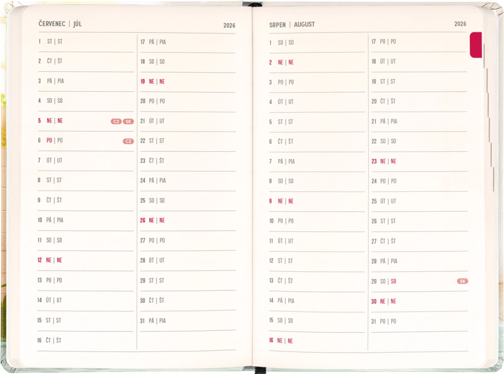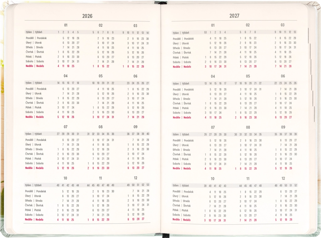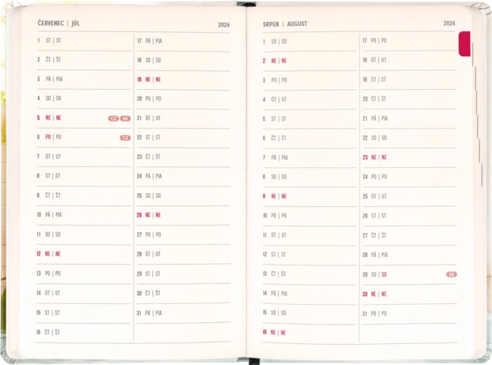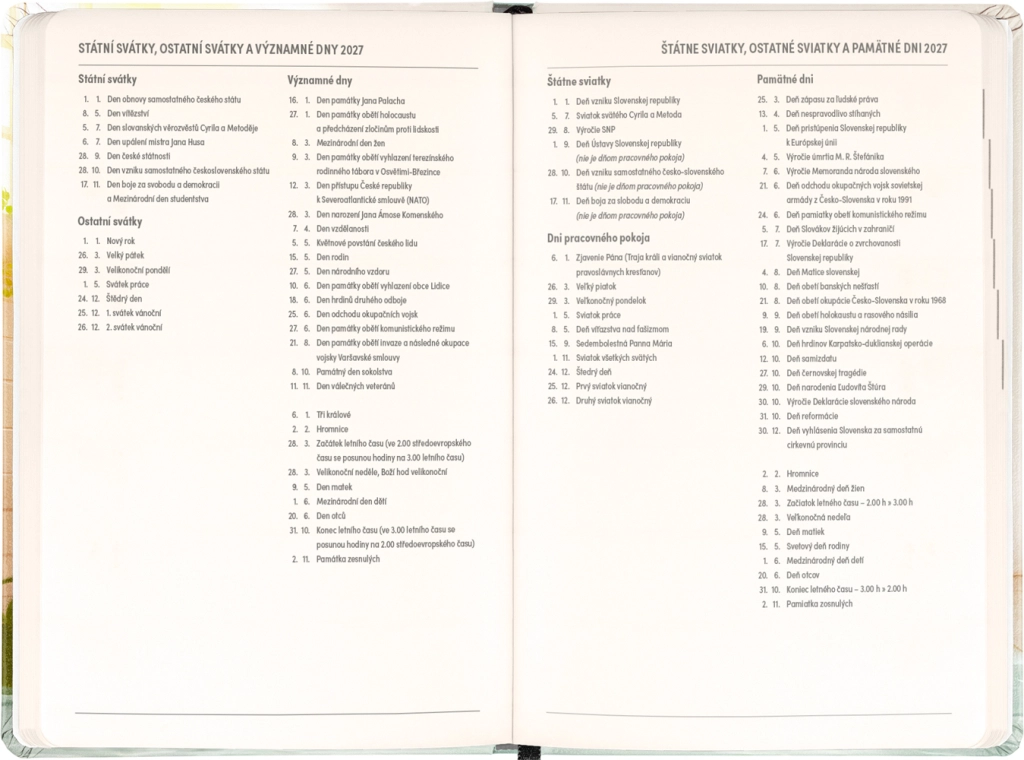 Terminarz ucieszy każdego, kto ceni połączenie funkcjonalności i pogodnego designu. Czesko‑słowackie kalendarium z imionami i świętami upraszcza planowanie i pomaga nie zapominać o ważnych dniach.