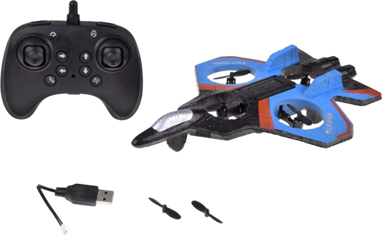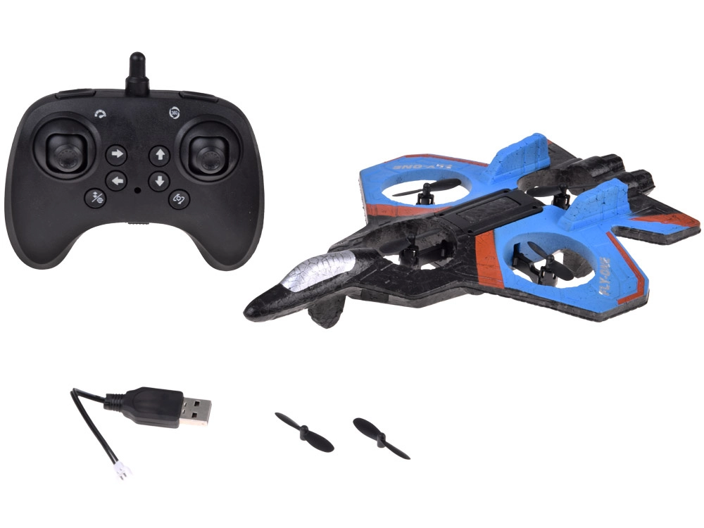 Dron, kontroler, kabel do ładowania USB, zapasowe śmigła