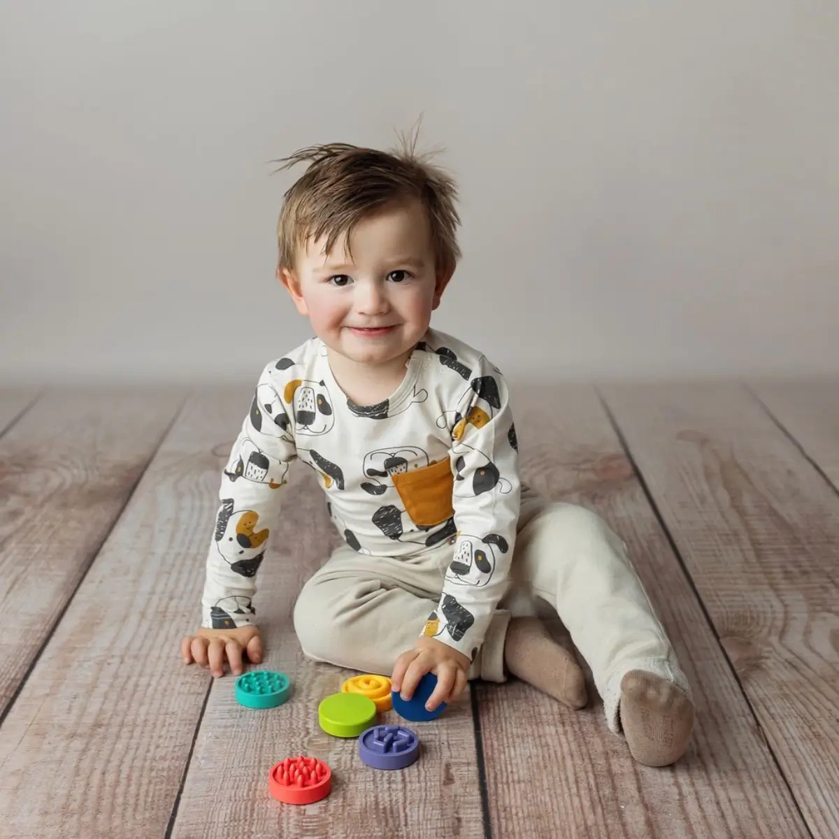 Kolorowe dyski z różnymi powierzchniami wspierają rozpoznawanie faktur, kolorów i kształtów. Dzieci w zabawny sposób wzmacniają zmysł dotyku i koncentrację.