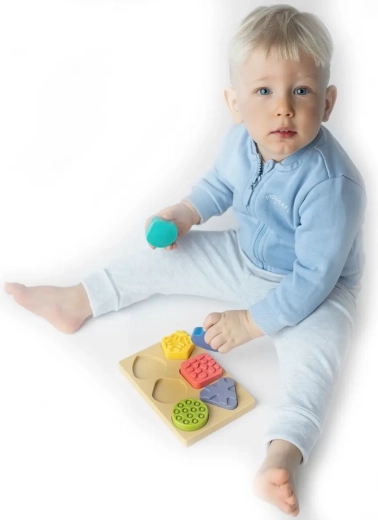 Sensoryczne puzzle Mom's Care łączą zabawę i naukę w jednym. Sześć kolorowych, teksturowanych elementów wkłada się w odpowiadające im wycięcia w solidnej tabliczce, co rozwija percepcję kształtów, chwyt i cierpliwość. Bezpieczne materiały i przemyślany design zapewniają wygodną i higieniczną zabawę w domu i w podróży.