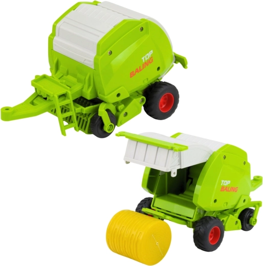 Holowana prasa dodaje zabawie autentycznej, farmerskiej atmosfery i rozszerza możliwości kreatywnej zabawy maszynami rolniczymi.