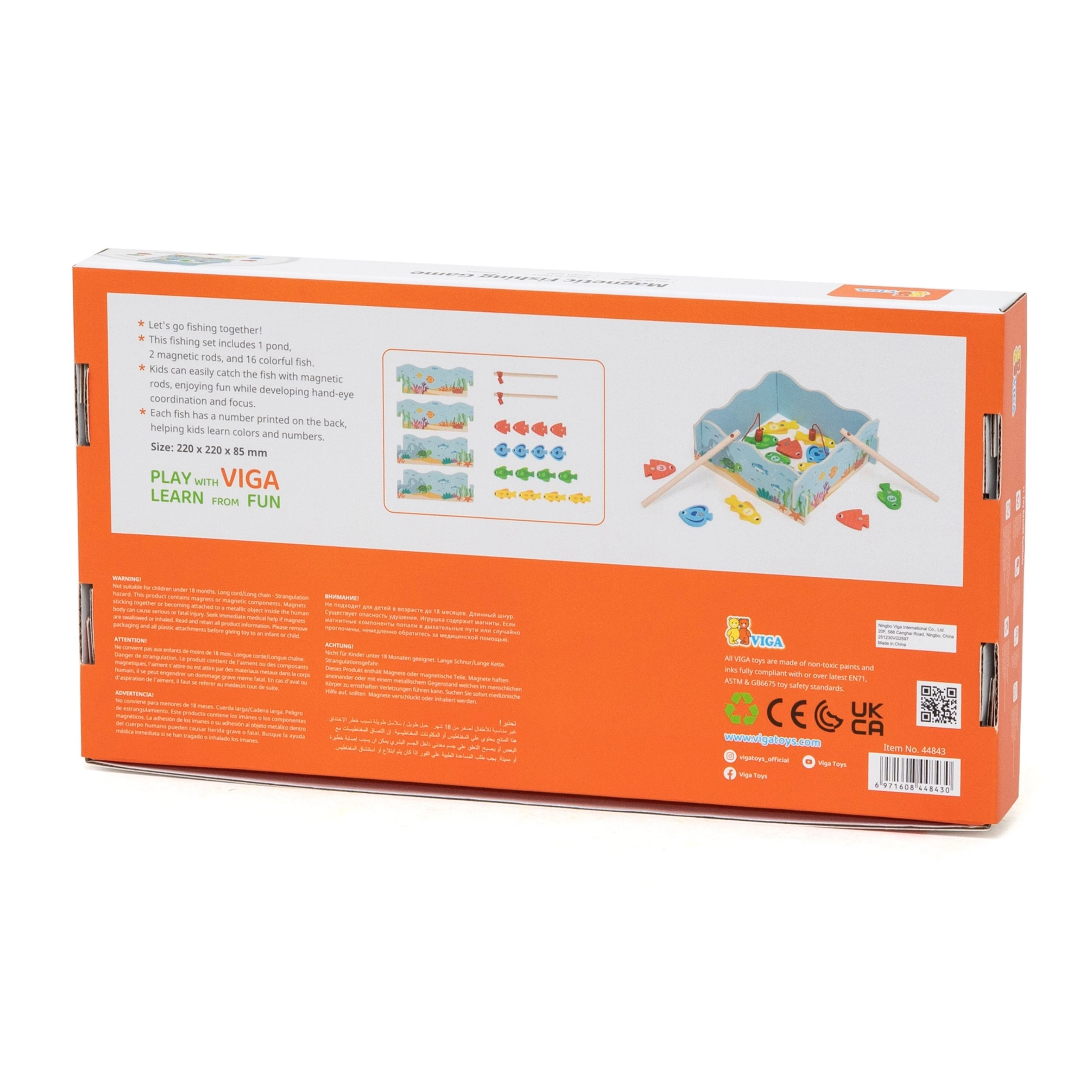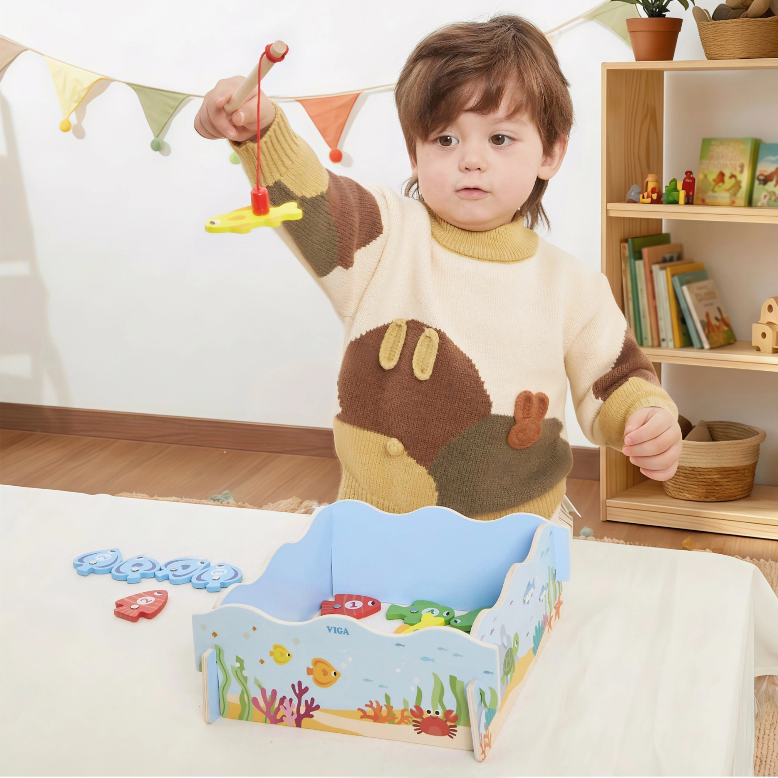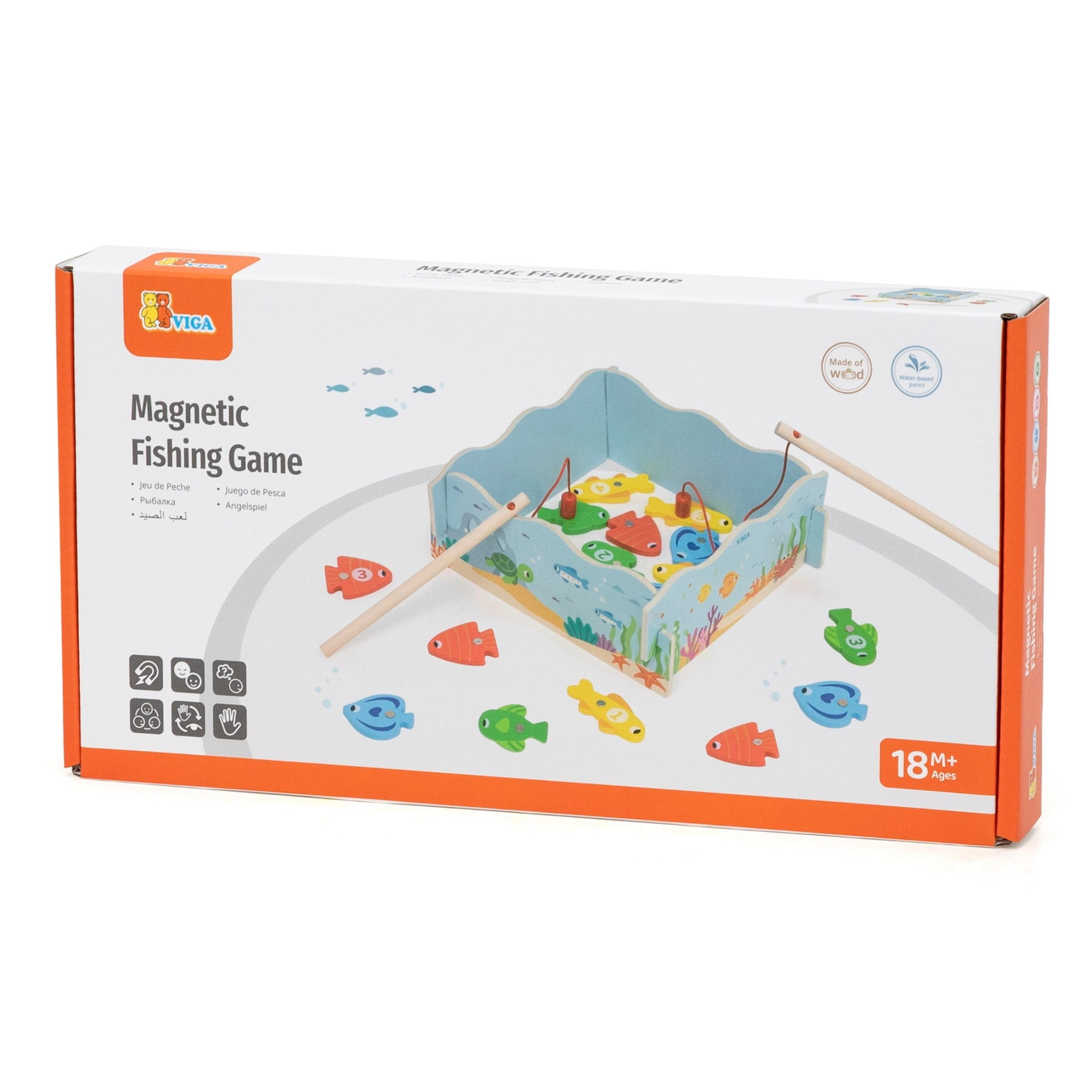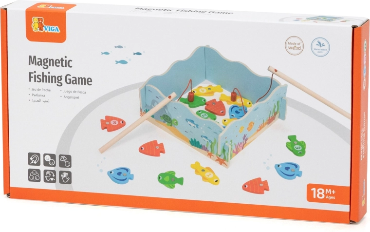 Łap kolorowe rybki i ucz się przez zabawę! Drewniana magnetyczna gra od VIGA oferuje bezpieczne magnetyczne łowienie, rybki oznaczone cyframi do nauki liczb i kolorów oraz solidną drewnianą konstrukcję. Idealna dla dzieci od 18 miesięcy, rozwija małą motorykę, koordynację ręka–oko i cierpliwość. Praktyczny „stawik” służy także jako pudełko do przechowywania.
