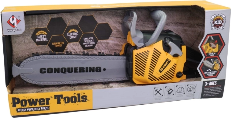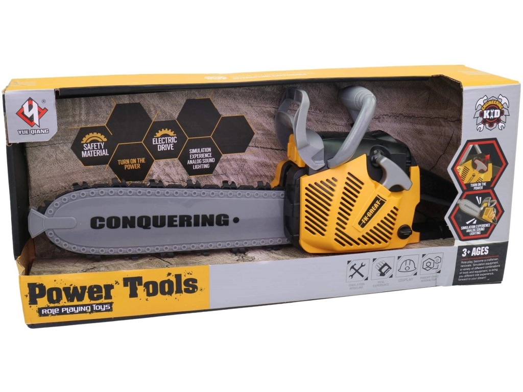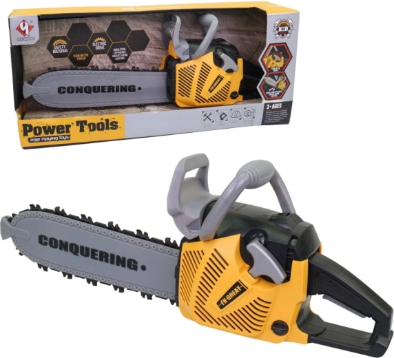 Realistyczna dziecięca piła łańcuchowa dla małych majsterkowiczów oferuje efekty świetlne i dźwiękowe, łatwą obsługę oraz bezpieczną plastikową konstrukcję. Idealna dla chłopców od 3 lat, którzy lubią naśladować pracę dorosłych. Dzięki długości 42 cm wygląda jak prawdziwa i zapewnia mnóstwo zabawy podczas zabaw w budowę i warsztat.