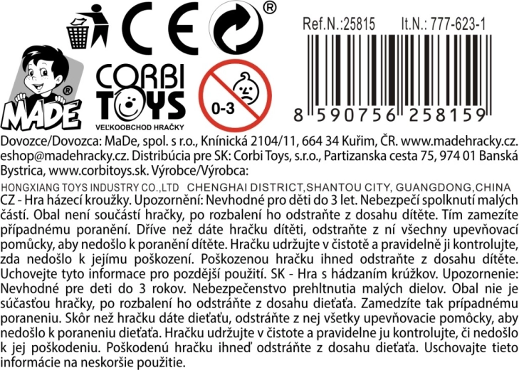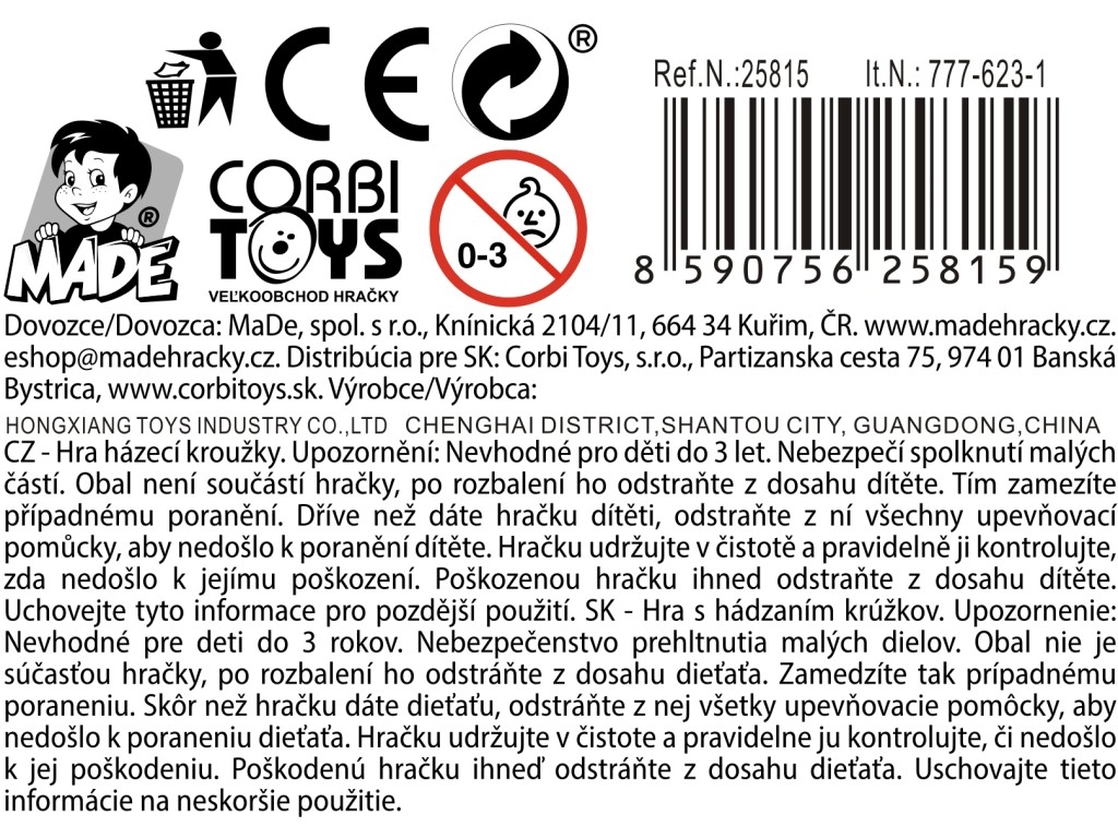 Odkryj klasyczną grę zręcznościową, która rozwija małą motorykę, koordynację oko–ręka i ducha rywalizacji. Rzutowe kółka wykonane są z trwałego plastiku, dzięki czemu wytrzymają częste użytkowanie w ogrodzie, w domu i na wakacjach. Dzięki lekkiemu i bezpiecznemu materiałowi są idealne dla dzieci od 3 lat.