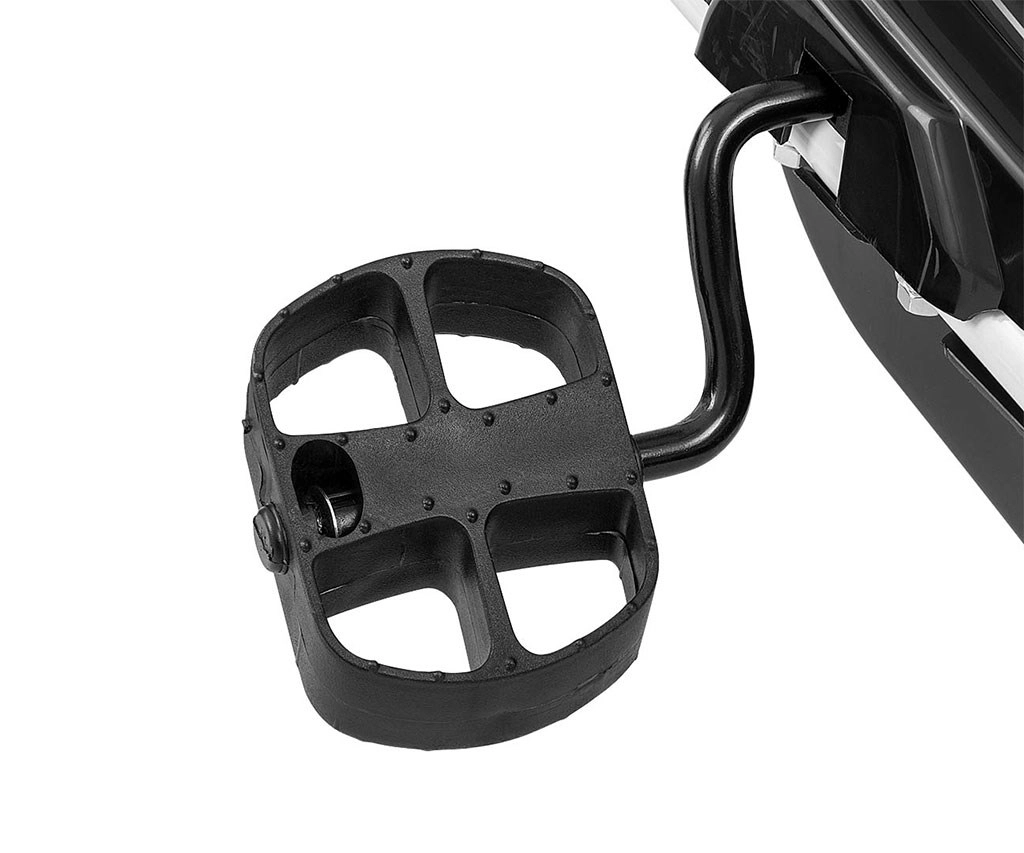 Napęd łańcuchowy z możliwością wolnego biegu oraz hamulec ręczny działający na oba tylne koła umożliwiają bezpieczne wytracanie prędkości i kontrolę tempa.