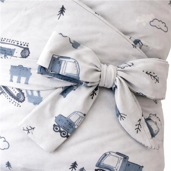 Miękki i ciepły dziecięcy otulacz New Baby z motywem Baby Machines zapewnia maluszkowi wygodę, ciepło i bezpieczne otulenie. Dzięki grubszej wyściółce ok. 3 cm jest idealny także na chłodniejsze dni, zapinany na rzep i wyposażony w wstążkę do zawiązania kokardy dla pewniejszego ściągnięcia. Poszewka ze 100% bawełny jest delikatna dla wrażliwej skóry, a wypełnienie stanowi włókno antyalergiczne. Certyfikat OEKO-TEX STANDARD 100 gwarantuje bezpieczeństwo materiałów.
