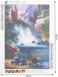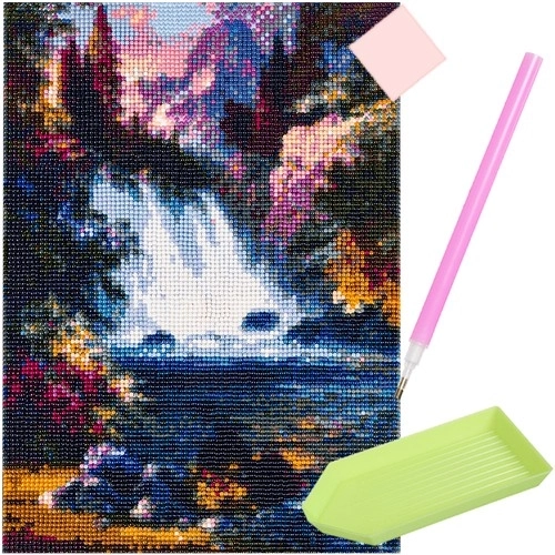 Motyw wodospadu o wymiarach 30 × 40 cm (powierzchnia obrazka 25 × 35 cm) zachwyca połyskiem i po zakończeniu świetnie nadaje się do oprawienia w ramę lub zawieszenia bez ramy. Zestaw jest kompletny – wszystko masz od razu pod ręką.
