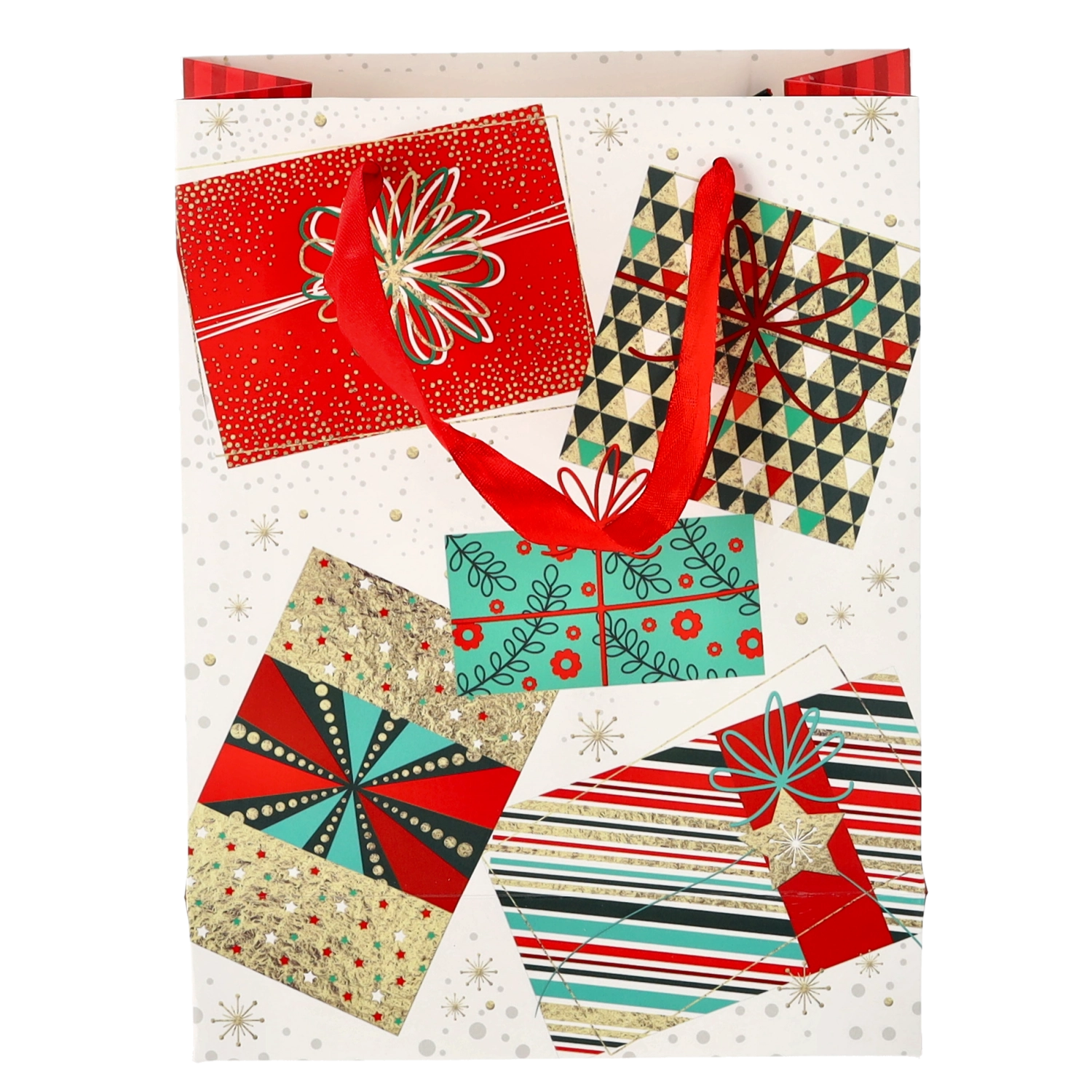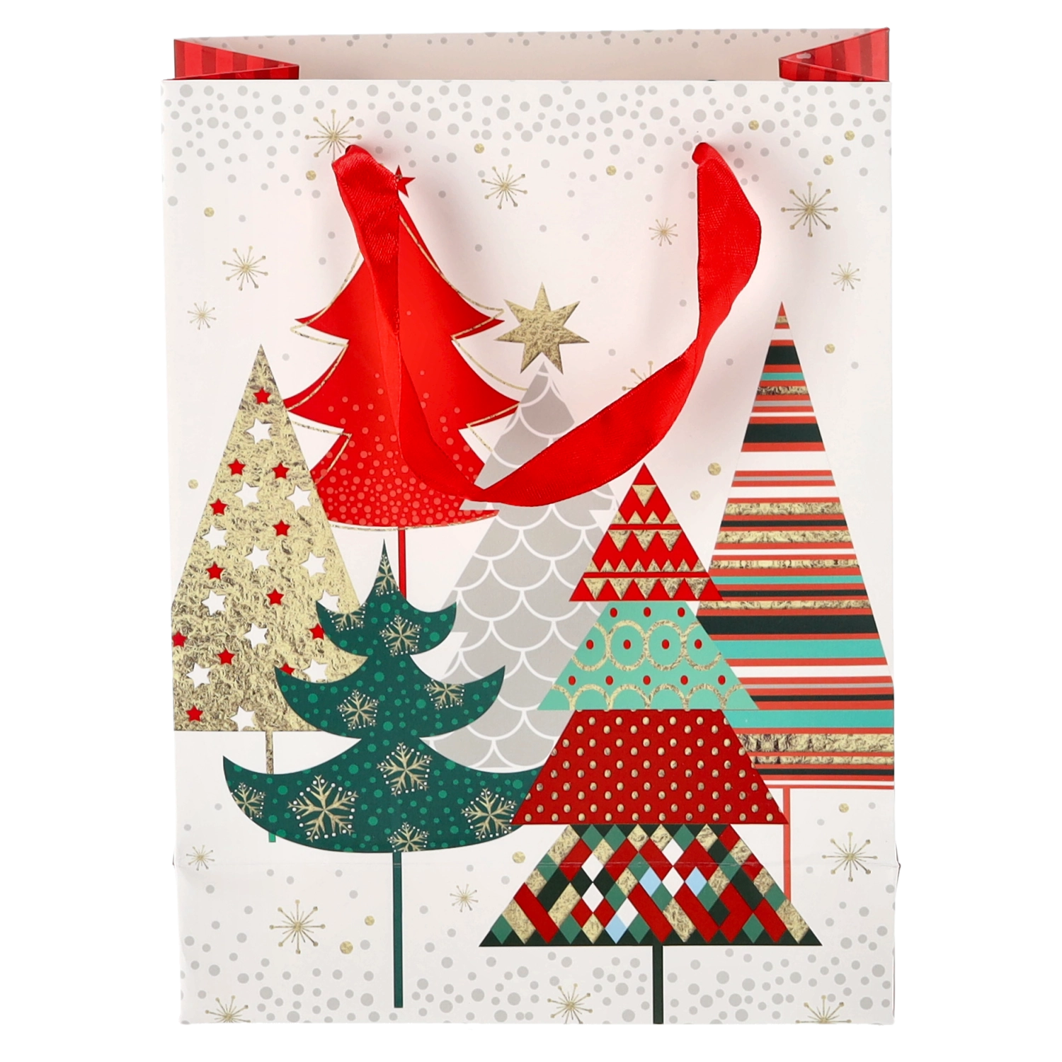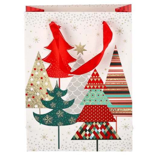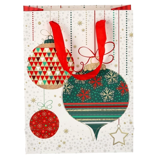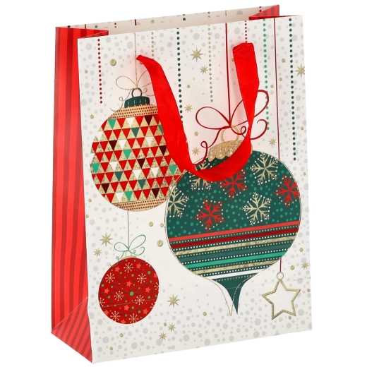 Ta świąteczna torebka z wysokiej jakości papieru zapewnia niezawodną nośność i wygodne przenoszenie dzięki mocnym wstążkowym uchwytom. Błyszcząca powierzchnia z dopracowaną grafiką podkreśla premiowy wygląd i uwydatnia styl każdego prezentu.