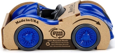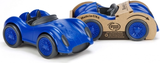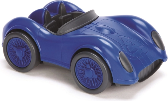 Niebieski samochód wyścigowy Green Toys to idealna zabawka na pierwsze wyścigi na dywanie, podłodze i w piasku. Minimalistyczny, gładki design bez ostrych krawędzi oraz trwała konstrukcja wspierają bezpieczną zabawę oraz rozwój motoryki małej i wyobraźni.