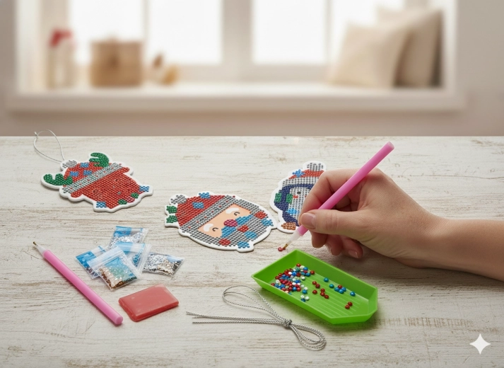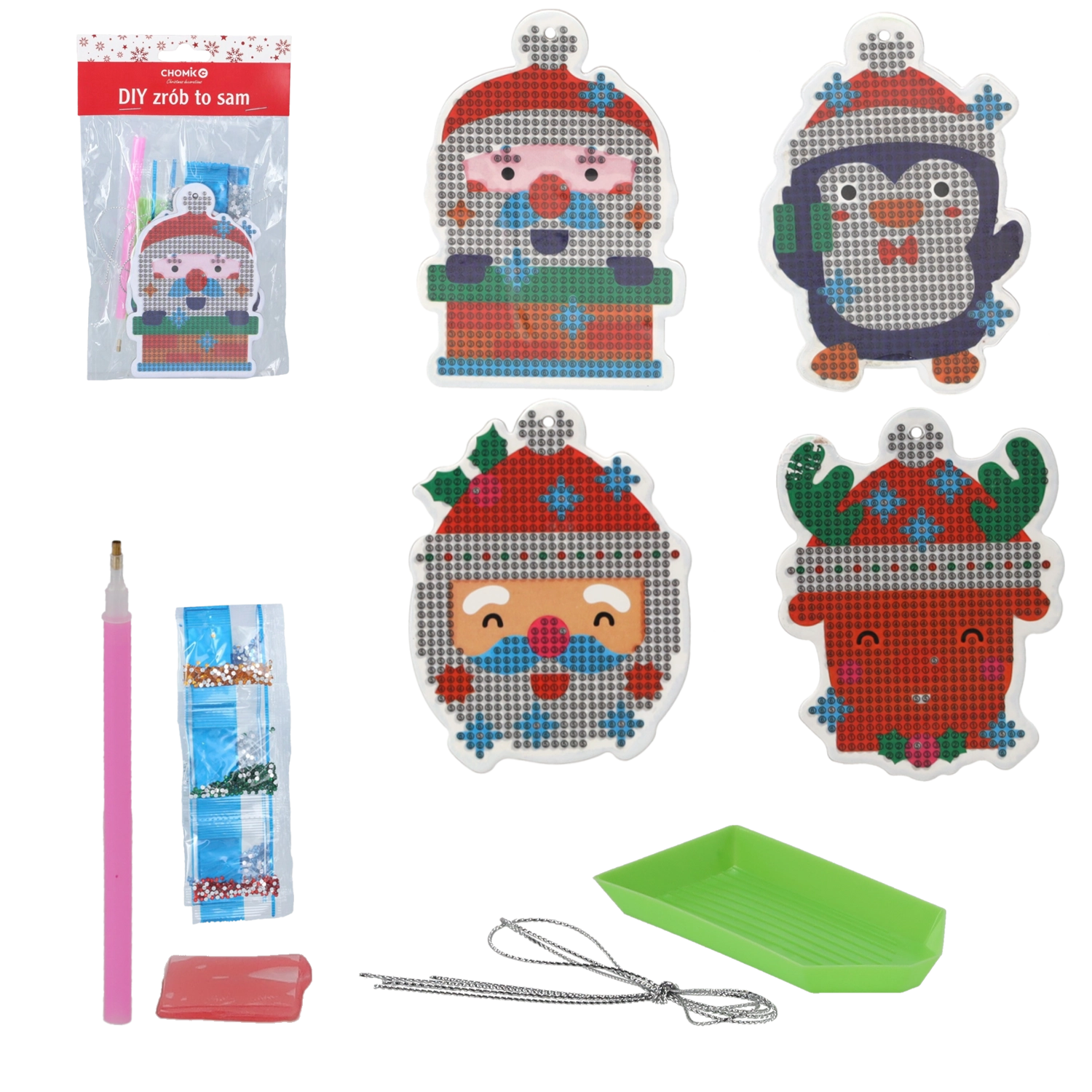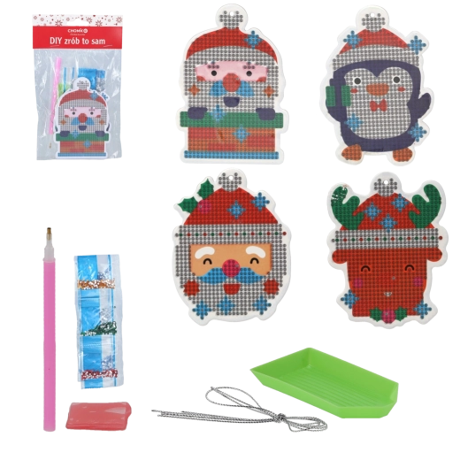 Idealny jako kreatywny prezent i wspólna aktywność dla całej rodziny. Mix świątecznych motywów (Mikołaj, renifer, pingwin) ucieszy dzieci i dorosłych, zapewniając uspokajający relaks i radość tworzenia. Ozdoby można zawiesić na choince, powiesić w oknie lub użyć jako oryginalne zawieszki do prezentów.