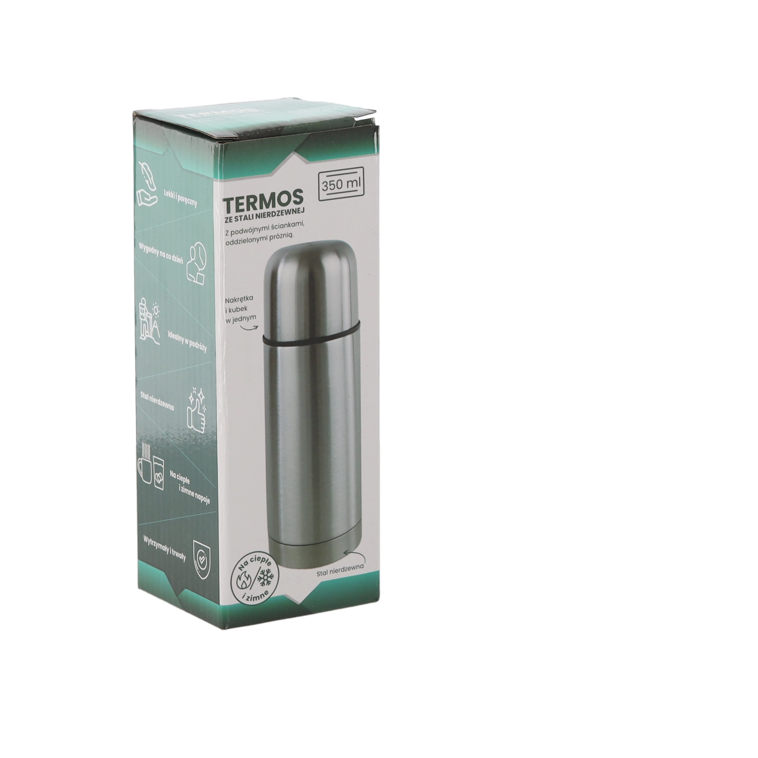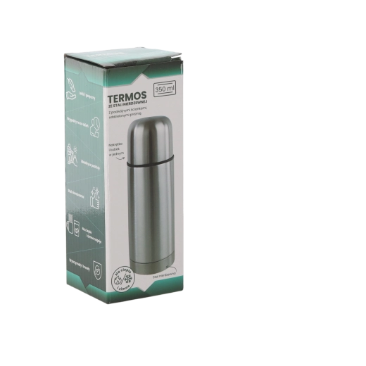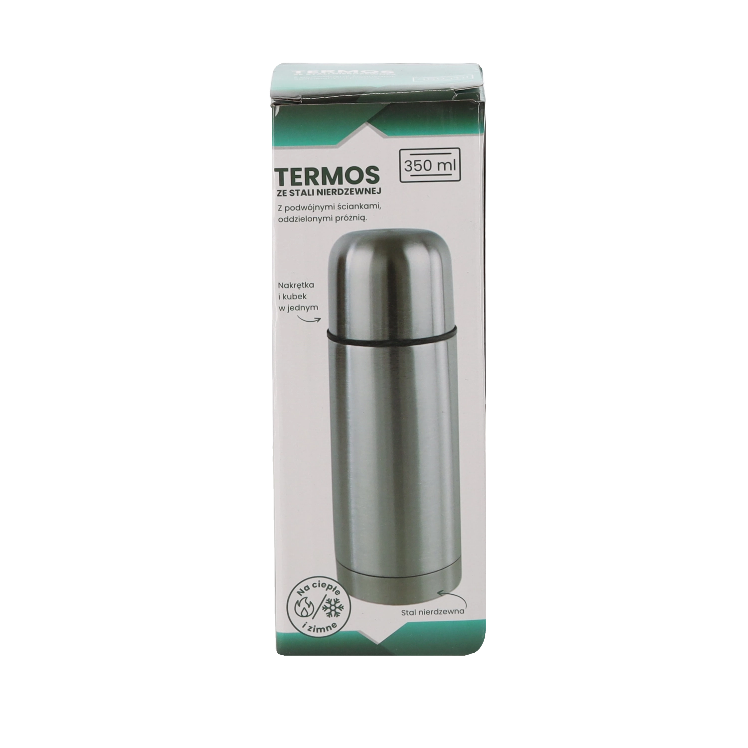 Kompaktowy termos o pojemności 350 ml utrzyma Twój napój długo ciepły lub zimny dzięki podwójnym ściankom ze stali nierdzewnej. Oferuje doskonałe właściwości izolacyjne, jest wytrzymały, łatwy do przenoszenia i idealny do pracy, szkoły oraz w podróży.