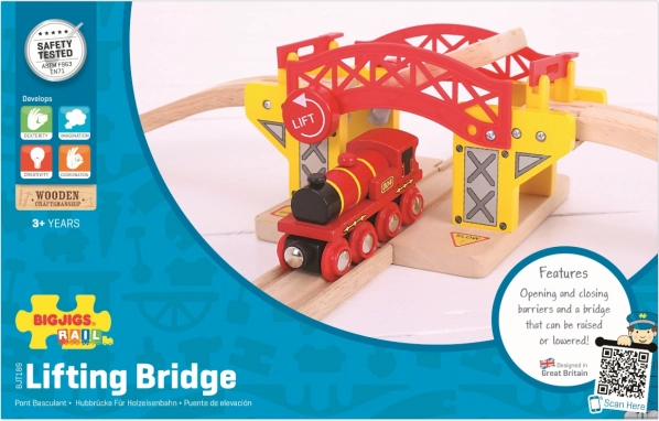 Drewniany podnoszony most jest doskonałym dodatkiem do każdej kolejki. Ten most jest kompatybilny ze wszystkimi drewnianymi kolejkami na rynku i jest wykonany z wysokiej jakości i odpowiedzialnie pozyskiwanych naturalnych materiałów. Konstrukcja, która wspiera kreatywność, zręczność i koordynację, oferuje realistyczne funkcje, takie jak podnoszenie mostu.