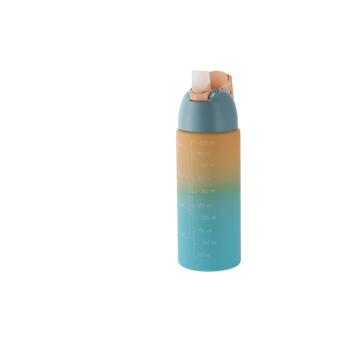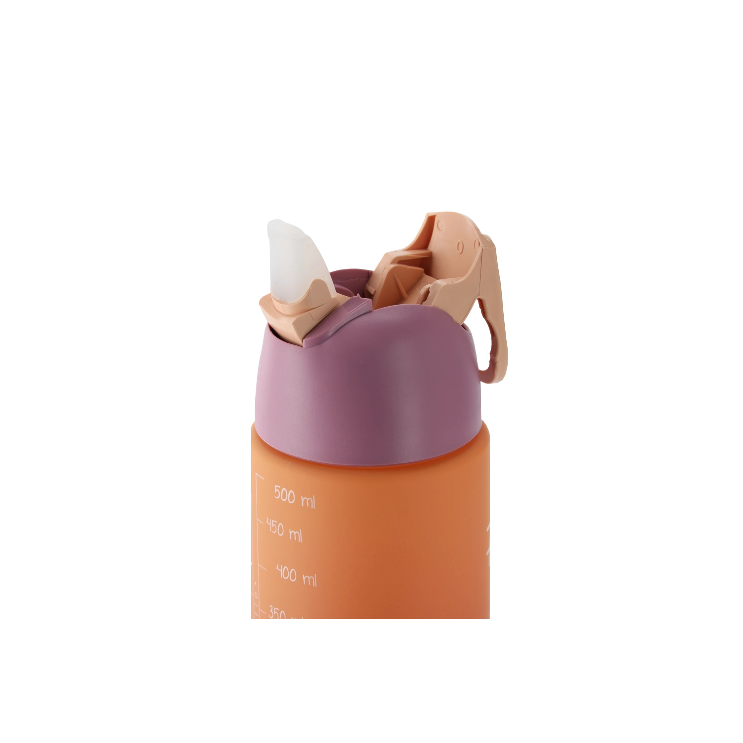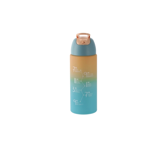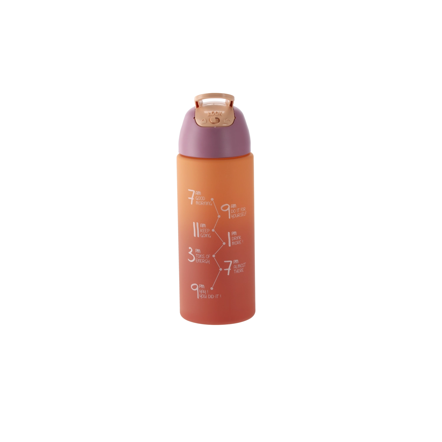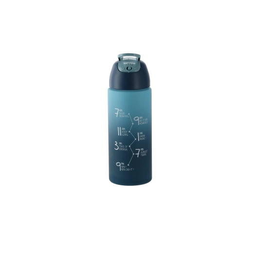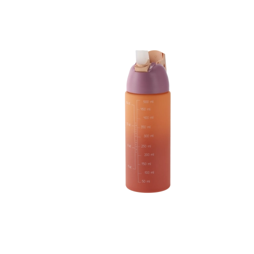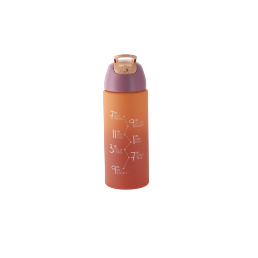 Półprzezroczysty korpus butelki z nadrukowaną skalą w mililitrach ułatwia kontrolę dziennego nawodnienia. Kompaktowy kształt wygodnie mieści się w uchwytach na napoje i bocznych kieszeniach plecaków – świetna na sport, do szkoły i do biura.