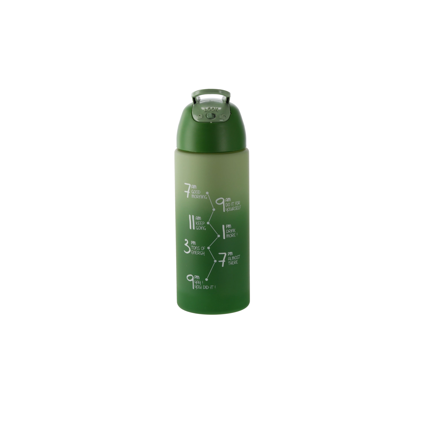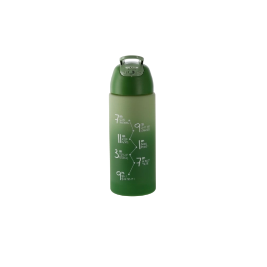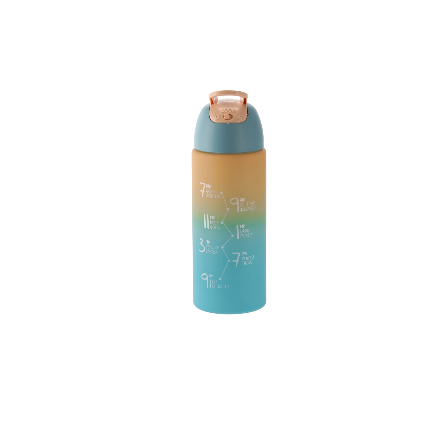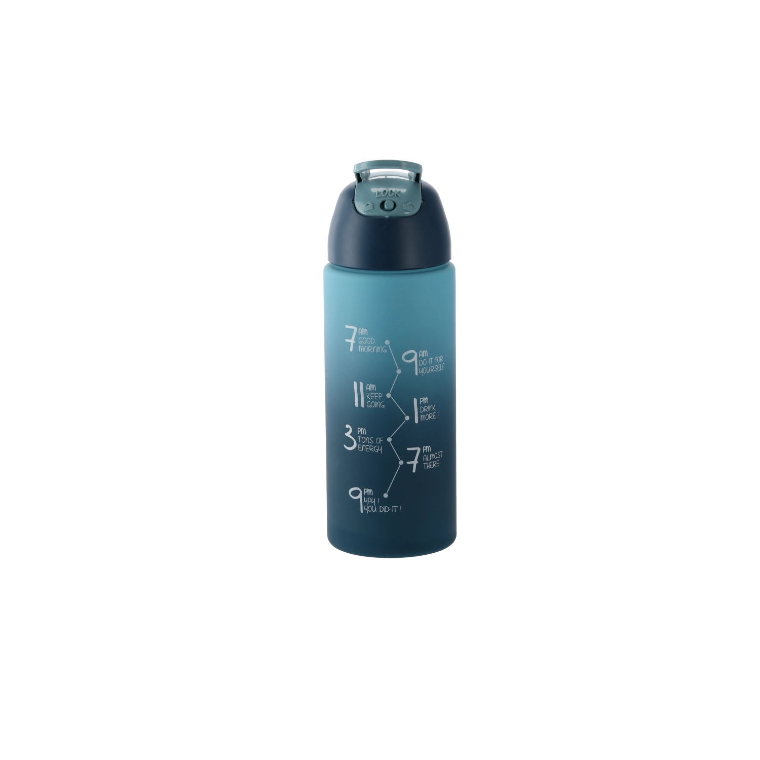 Półprzezroczysty korpus butelki z nadrukowaną skalą w mililitrach ułatwia kontrolę dziennego nawodnienia. Kompaktowy kształt wygodnie mieści się w uchwytach na napoje i bocznych kieszeniach plecaków – świetna na sport, do szkoły i do biura.