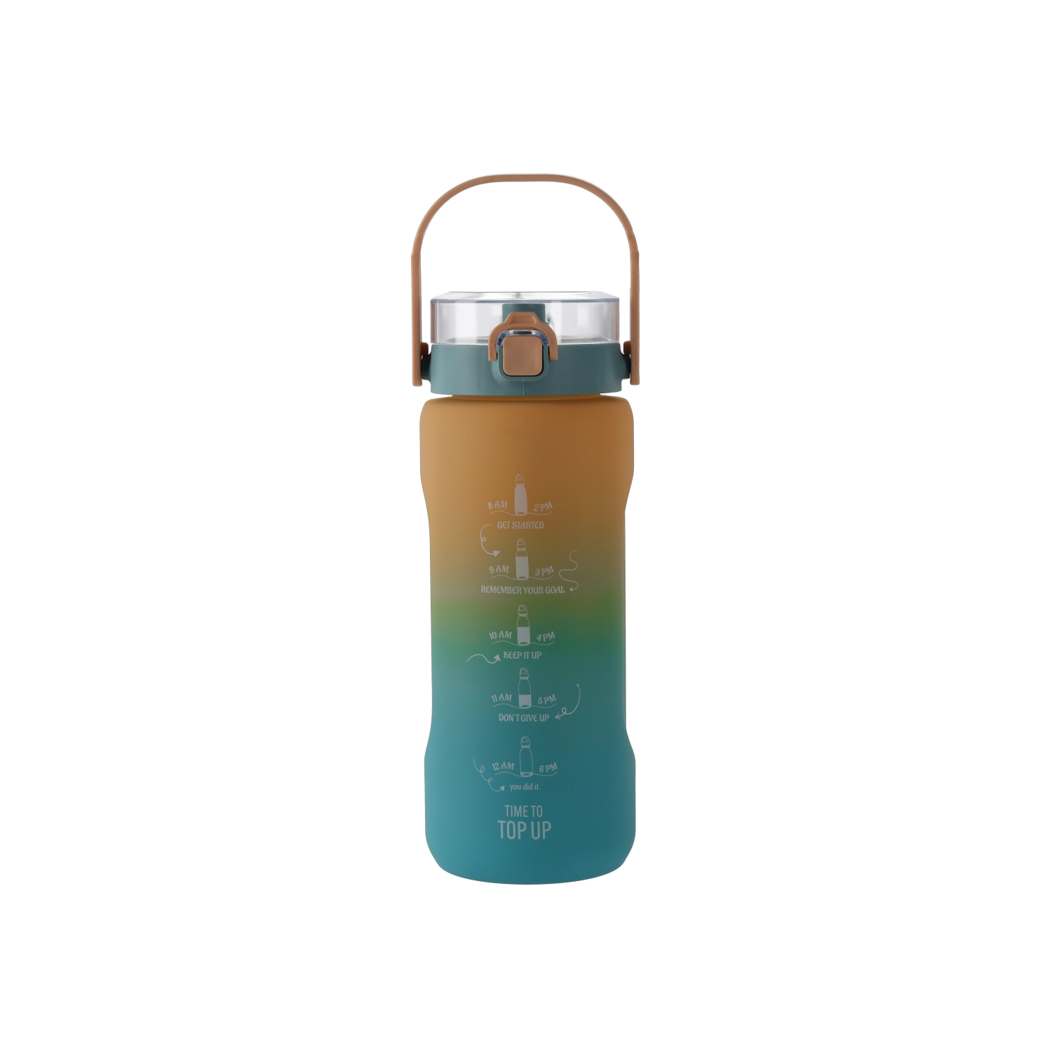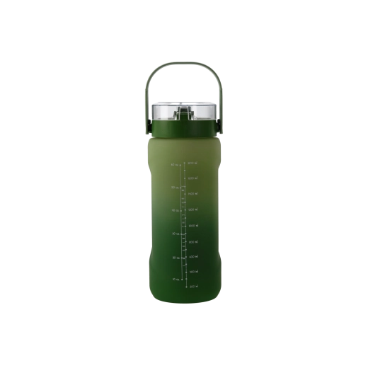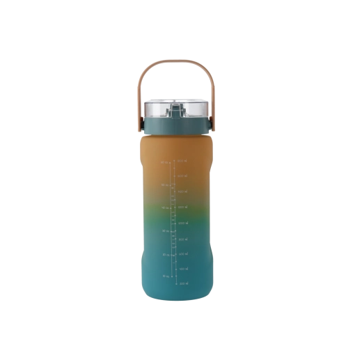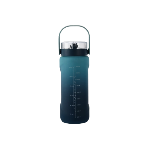 Ta wielkopojemna butelka na wodę (2000 ml) łączy nowoczesny wygląd z praktycznymi detalami do łatwego, codziennego użytkowania. Przejście ciemnego i jasnego niebieskiego nadaje butelce atrakcyjny styl, a solidny materiał PC jest lekki, wytrzymały i odpowiedni do częstego noszenia.