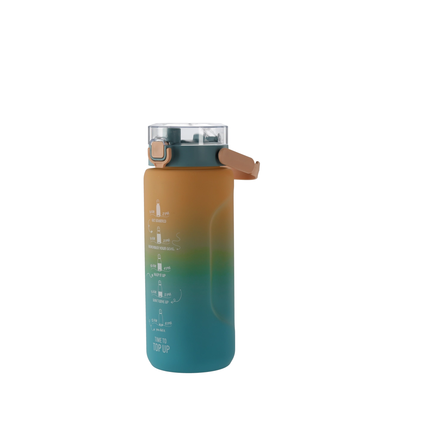Pokrywka z ustnikiem i zabezpieczającym zamknięciem chroni przed przypadkowym otwarciem i rozlaniem. Boczne ucho/uchwyt ułatwia przenoszenie, dzięki czemu butelka świetnie sprawdzi się w pracy, na siłowni i na wycieczkach. Dzięki zaznaczonym podziałkom będziesz mieć swój plan picia pod kontrolą przez cały dzień.