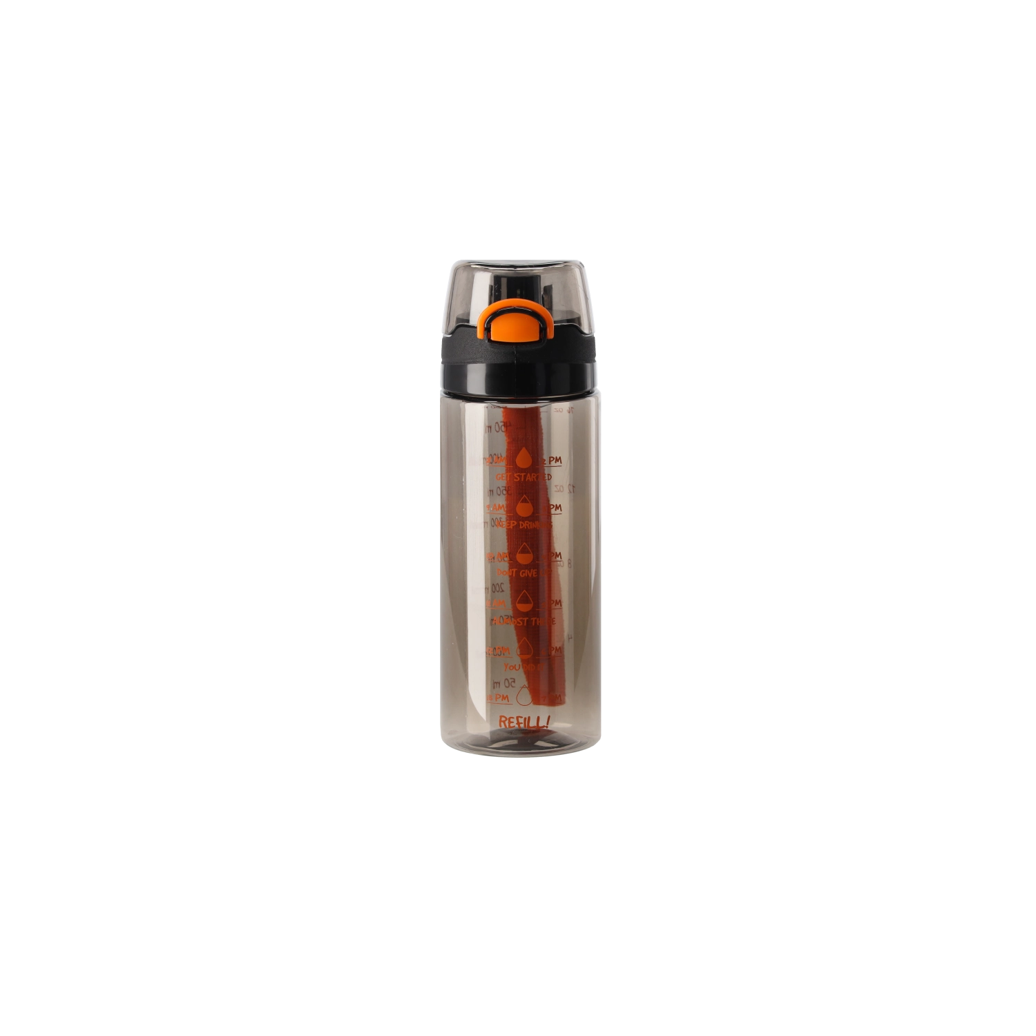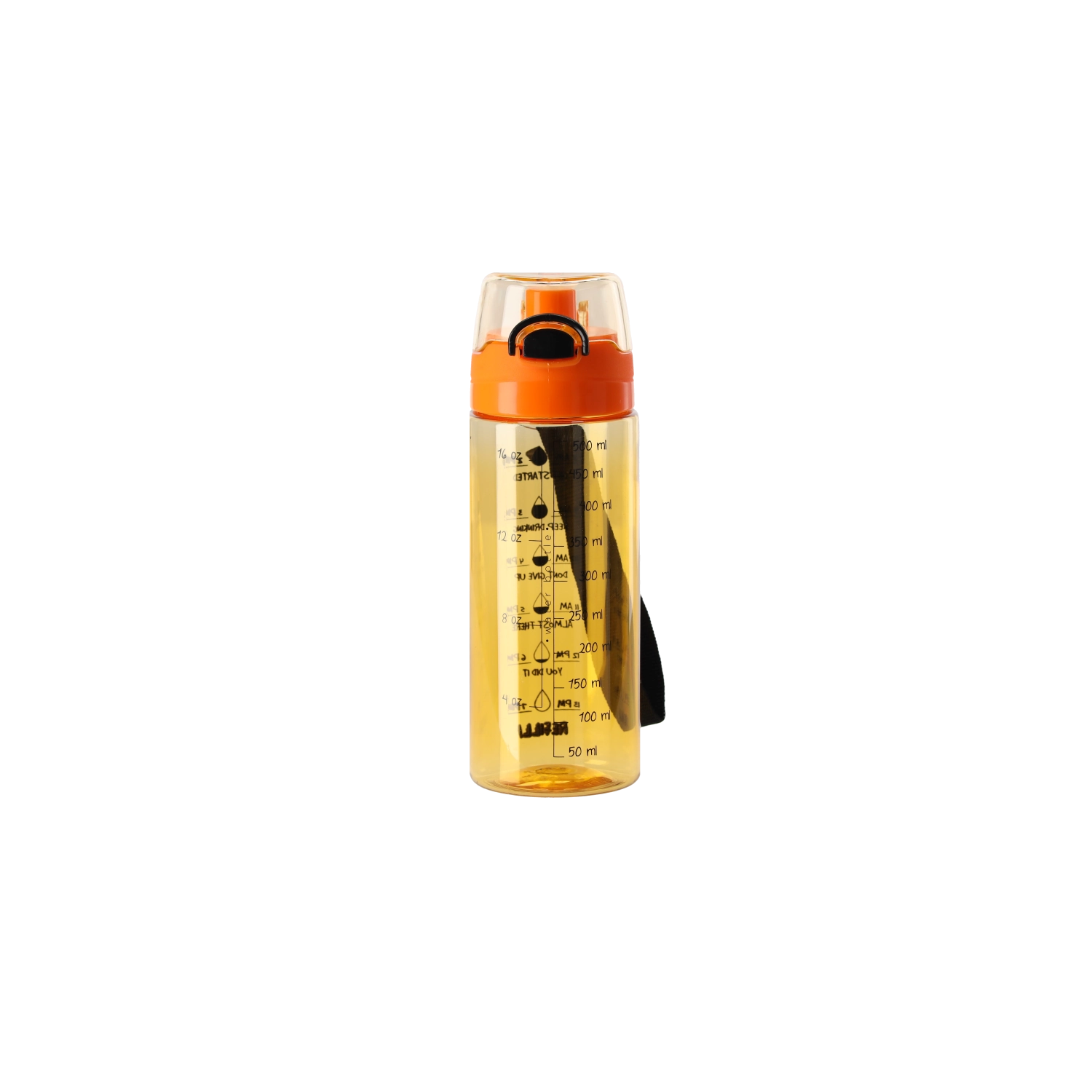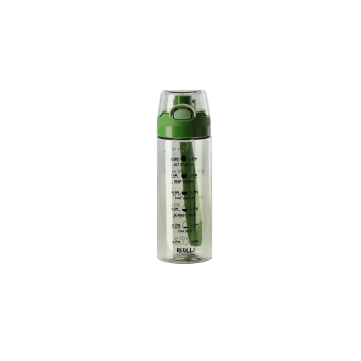 Praktyczna butelka na wodę o pojemności 500 ml z wytrzymałego materiału PC do codziennego nawadniania. Na korpusie znajdują się podziałka i graficzne wzory, które pomagają śledzić spożycie płynów. Dzięki lekkiej i solidnej konstrukcji jest idealna do pracy, szkoły i na sport.