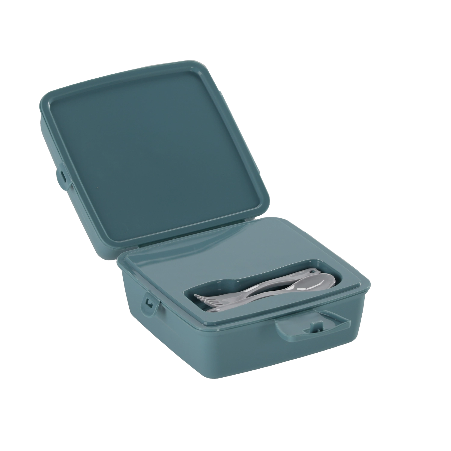 Szukasz pojemnego i wytrzymałego pojemnika na jedzenie? To pudełko śniadaniowe o pojemności 1300 ml w jasnoniebieskim kolorze oferuje wystarczająco dużo miejsca na obiad, przekąskę i owoce. Dzięki solidnej pokrywce z nadrukiem i pewnemu zamknięciu żywność pozostaje bezpiecznie przechowywana przez cały dzień.