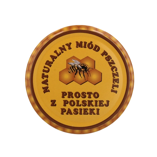 Zapewnij swoim słoikom z miodem profesjonalne wykończenie. Metalowe wieczka 82 mm z 6 nacięciami pewnie uszczelniają, chronią przed powietrzem, wilgocią i zanieczyszczeniami oraz pomagają zachować świeżość i jakość miodu. Dekor z motywem naturalnego miodu pszczelego podkreśla autentyczność i zwiększa atrakcyjność produktu na pierwszy rzut oka.