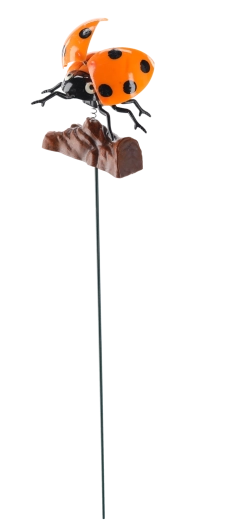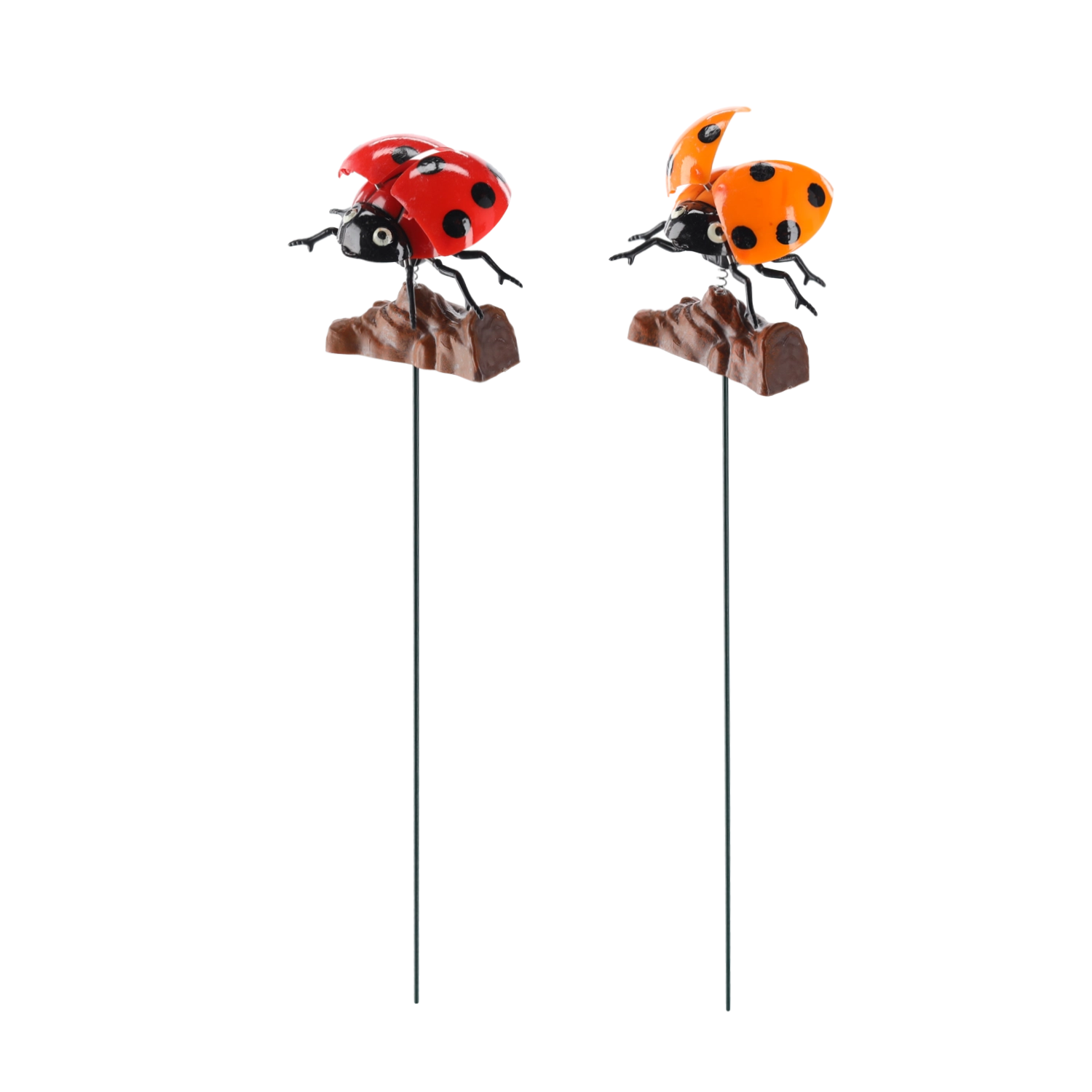 Błyszczące ciało biedronki w kolorze czerwonym lub żółtym z kontrastowymi kropkami doda Twojej zieleni atrakcyjnego akcentu.