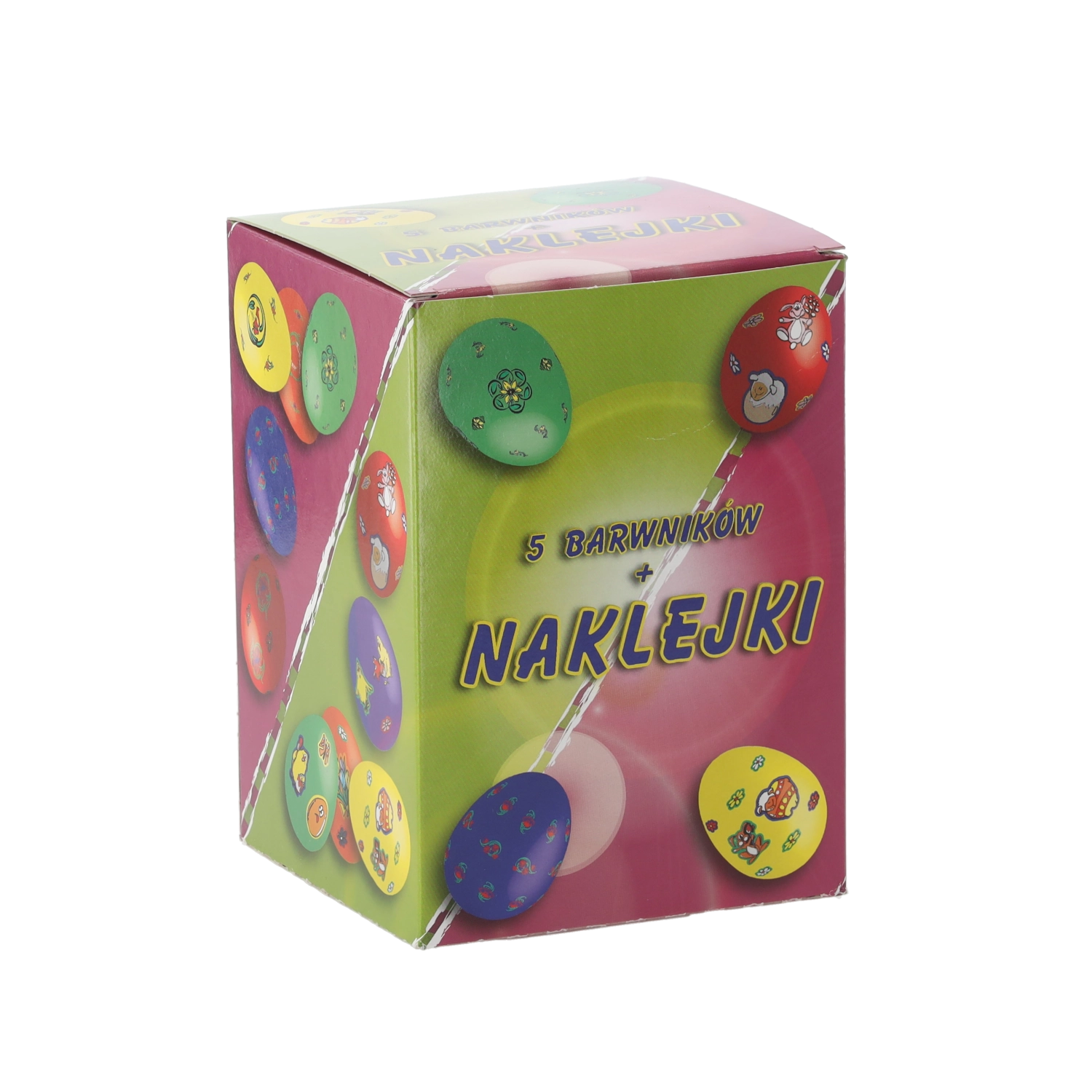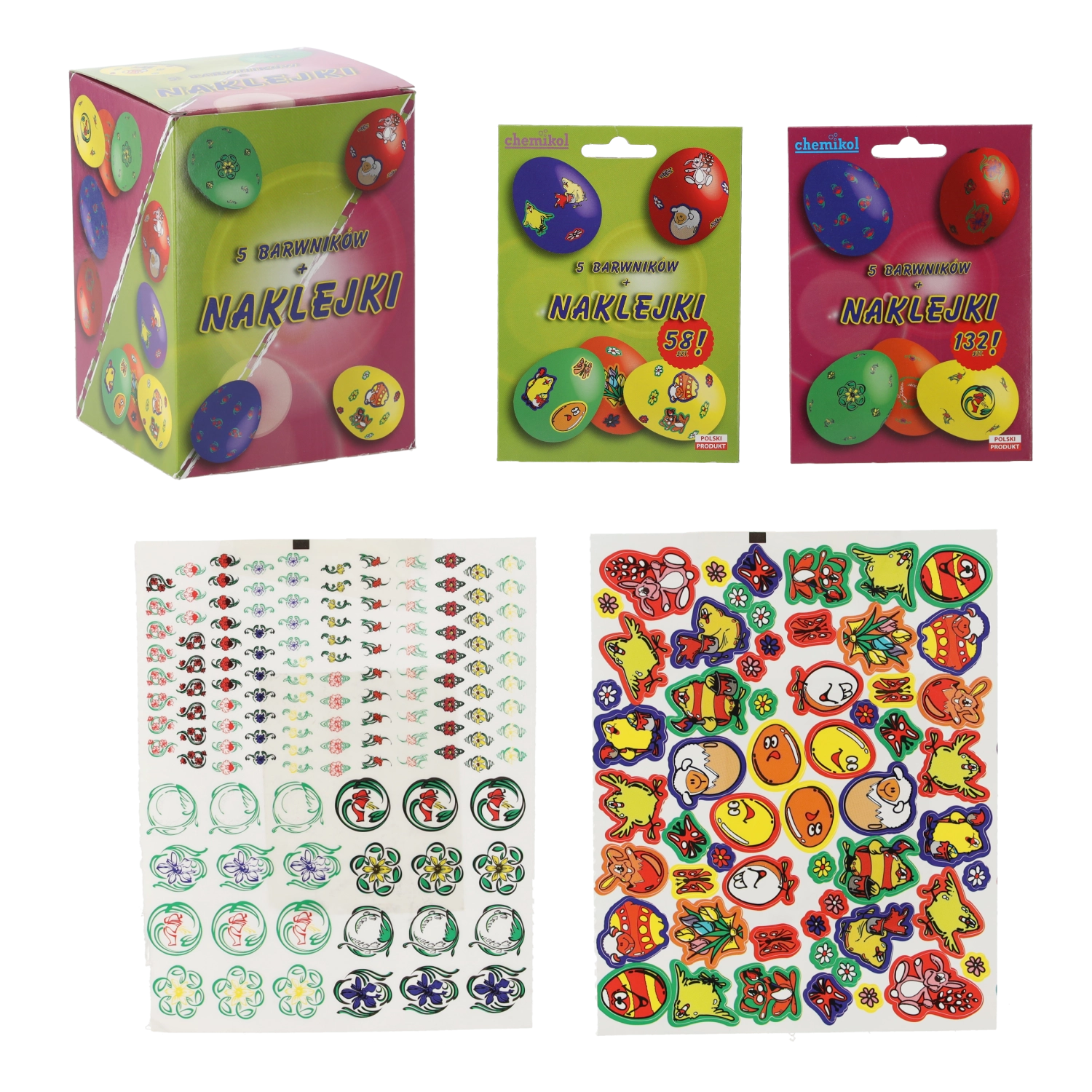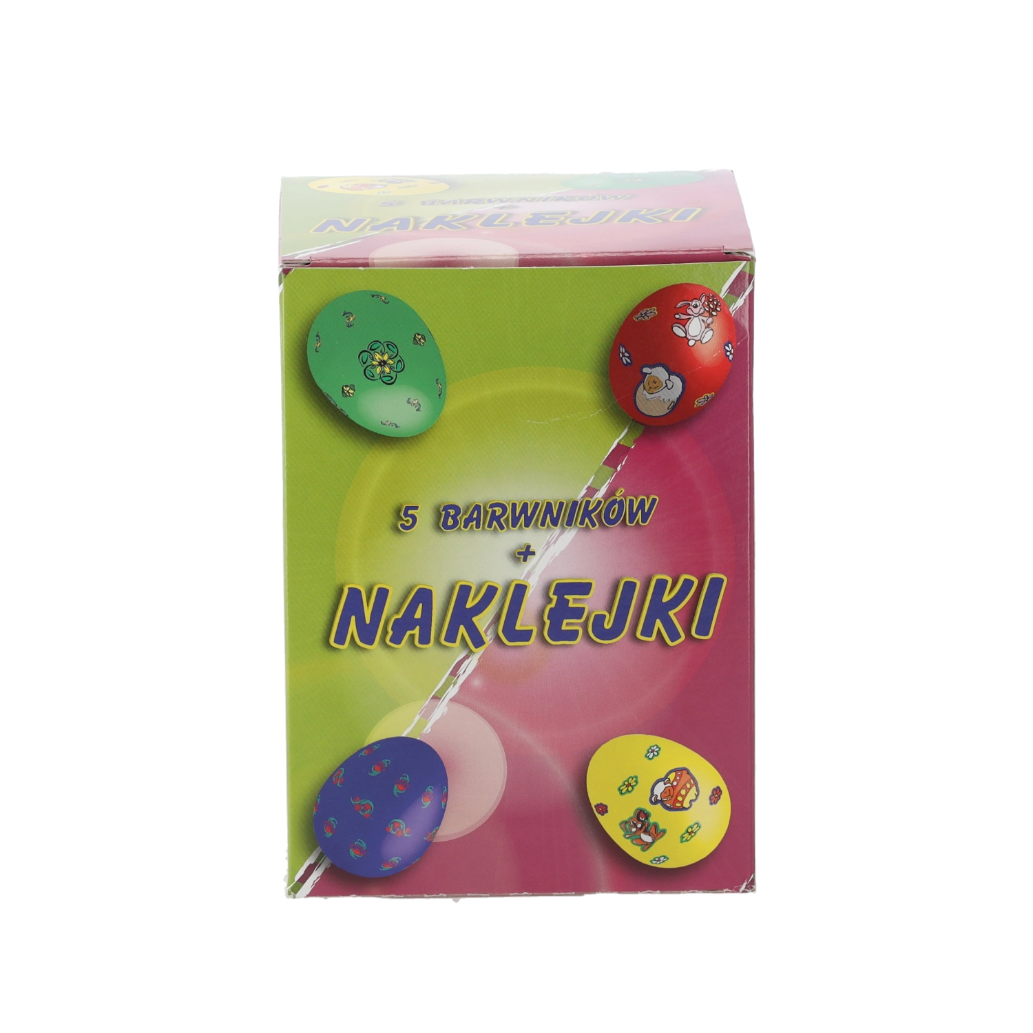 Użycie jest proste: zawartość saszetki rozpuść w gorącej wodzie z odrobiną octu, włóż gorące, ugotowane na twardo i umyte jajko na kilka minut, osusz, a następnie ozdób naklejkami. Idealny do rodzinnego tworzenia, warsztatów szkolnych oraz szybkich domowych dekoracji, bez skomplikowanych narzędzi i z profesjonalnym efektem.