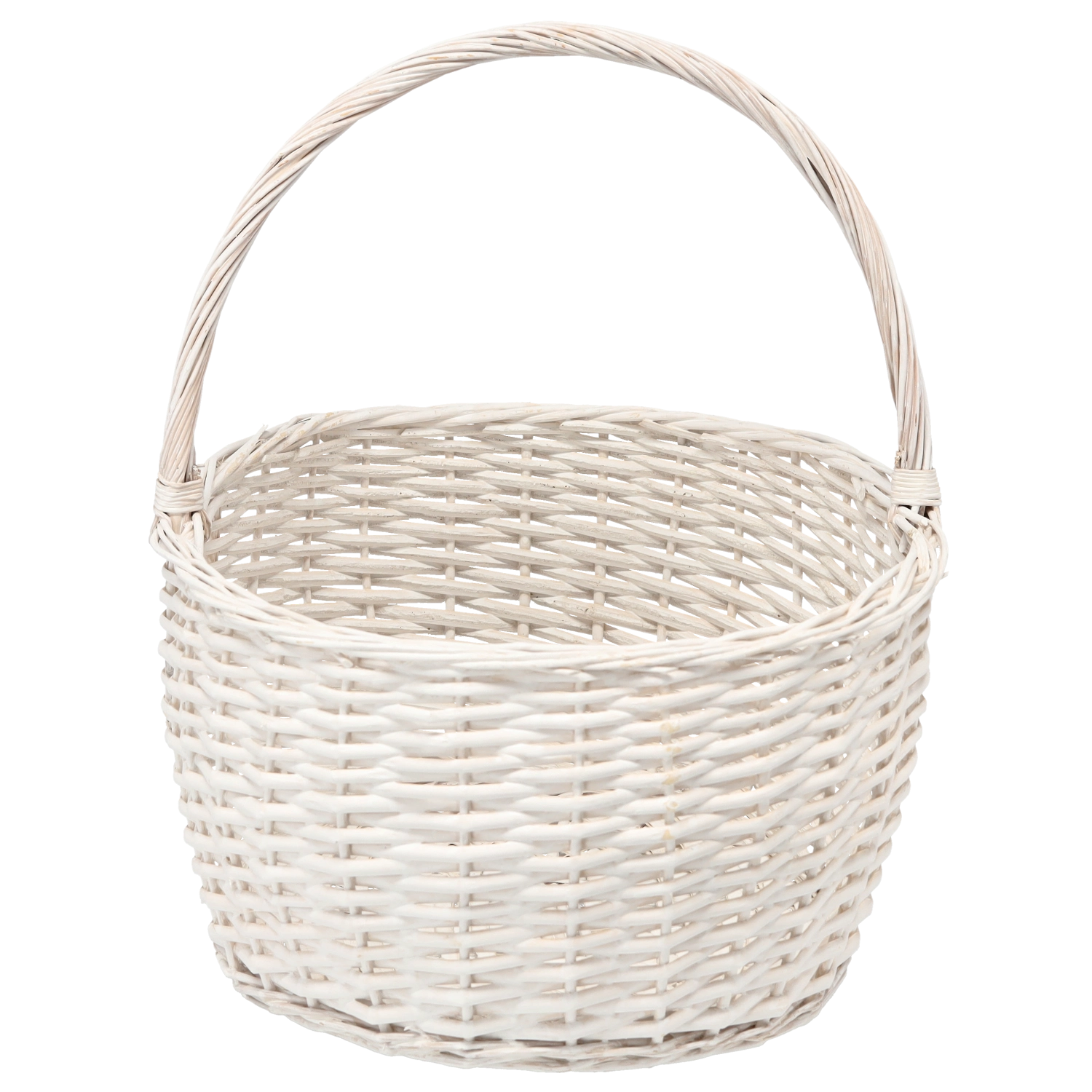 Ręcznie pleciona wiklina jest lakierowana białą farbą akrylową na bazie wody, co zapewnia dłuższą żywotność i elegancki wygląd.