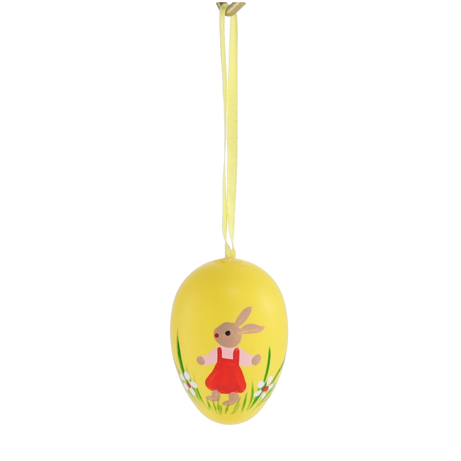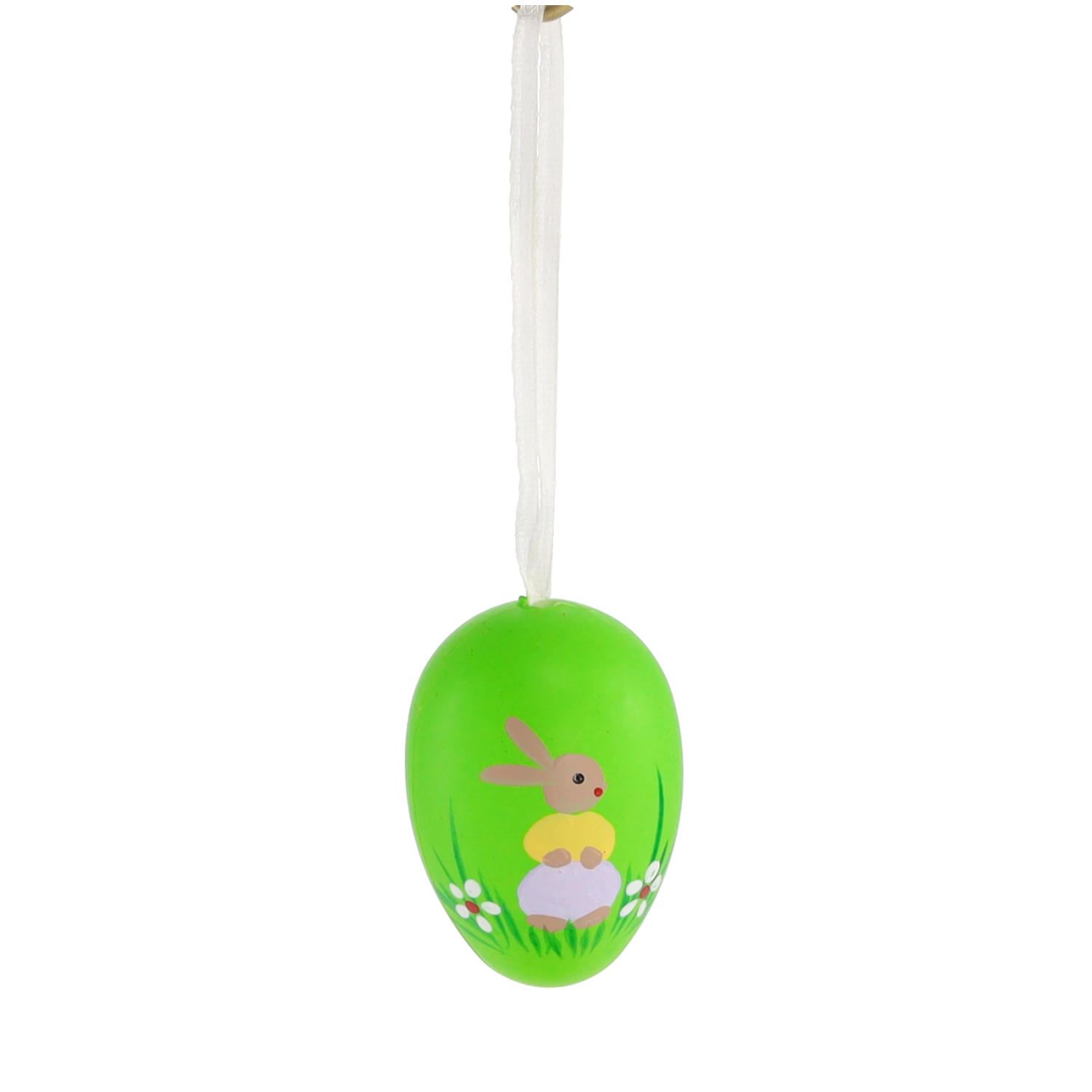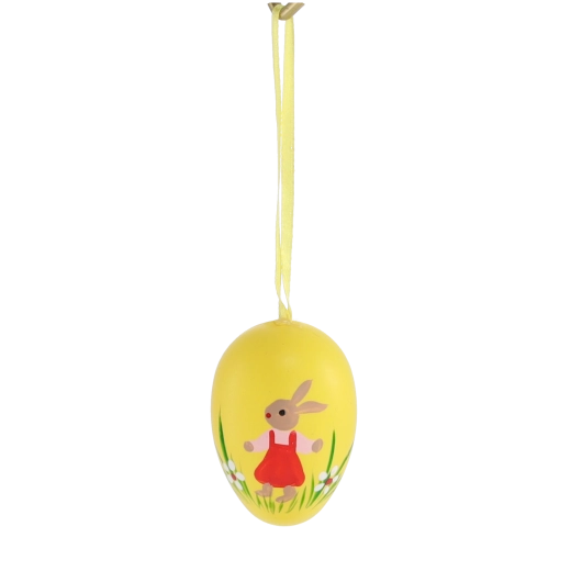 Ten elegancki zestaw zawiera 6 sztuk plastikowych wielkanocnych jajek o wymiarach 4 × 6 cm. Każde zdobione jest uroczym motywem zajączka w trawie i wyposażone w wstążkę do zawieszenia. Pastelowe odcienie żółci, zieleni i lawendy podkreślą wiosenny nastrój i łatwo łączą się z innymi dekoracjami.