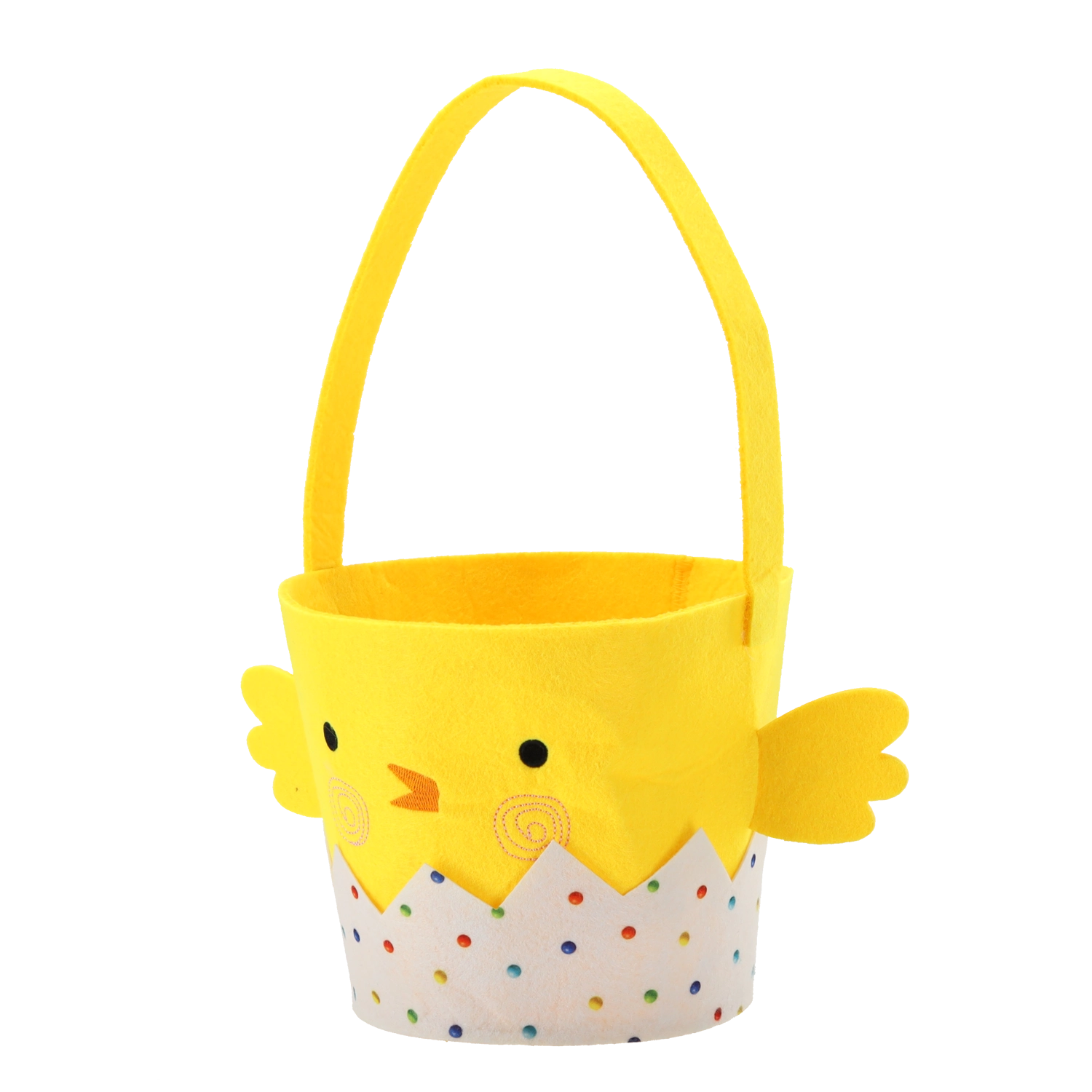 Stwórz w domu radosną atmosferę z dekoracyjnym koszyczkiem z miękkiego filcu. Żółte kurczątko wyglądające z zielonej skorupki z napisem „Easter” oraz filcowym kwiatuszkiem na głowie doda wystrojowi uroku i figlarności. Intensywne połączenie żółtego, zielonego i pomarańczowego przyciąga wzrok i świetnie komponuje się z wiosennymi dodatkami.