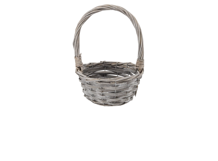 Uniwersalny szary wiklinowy koszyk z rączką idealnie sprawdzi się na drobne zakupy, zbiór owoców lub stylowe przechowywanie drobiazgów w domu. Naturalna wiklina nadaje koszykowi autentyczny charakter i jednocześnie zapewnia długą żywotność.
