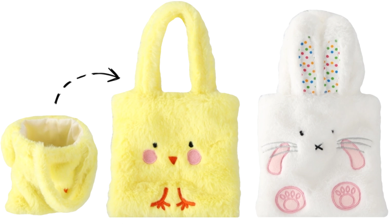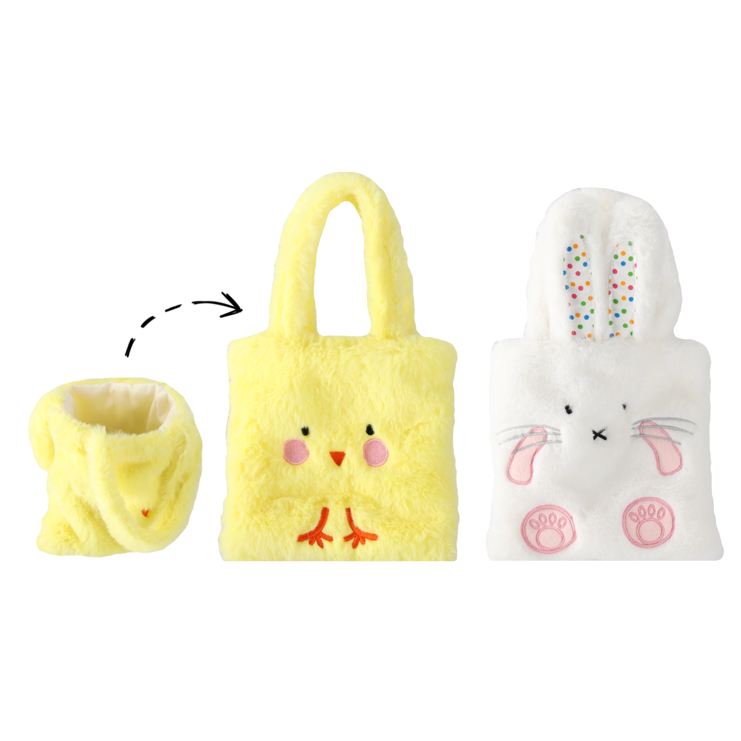 Ta stylowa wielkanocna torebka w formie uroczego kurczaczka lub zajączka wykonana jest z miękkiego, delikatnego w dotyku materiału, który prezentuje się wyjątkowo słodko. Dzięki kompaktowym wymiarom 16 × 16 cm jest idealna do zbierania jajek, obdarowywania dzieci drobiazgami lub jako dekoracyjny dodatek do wielkanocnego stołu.