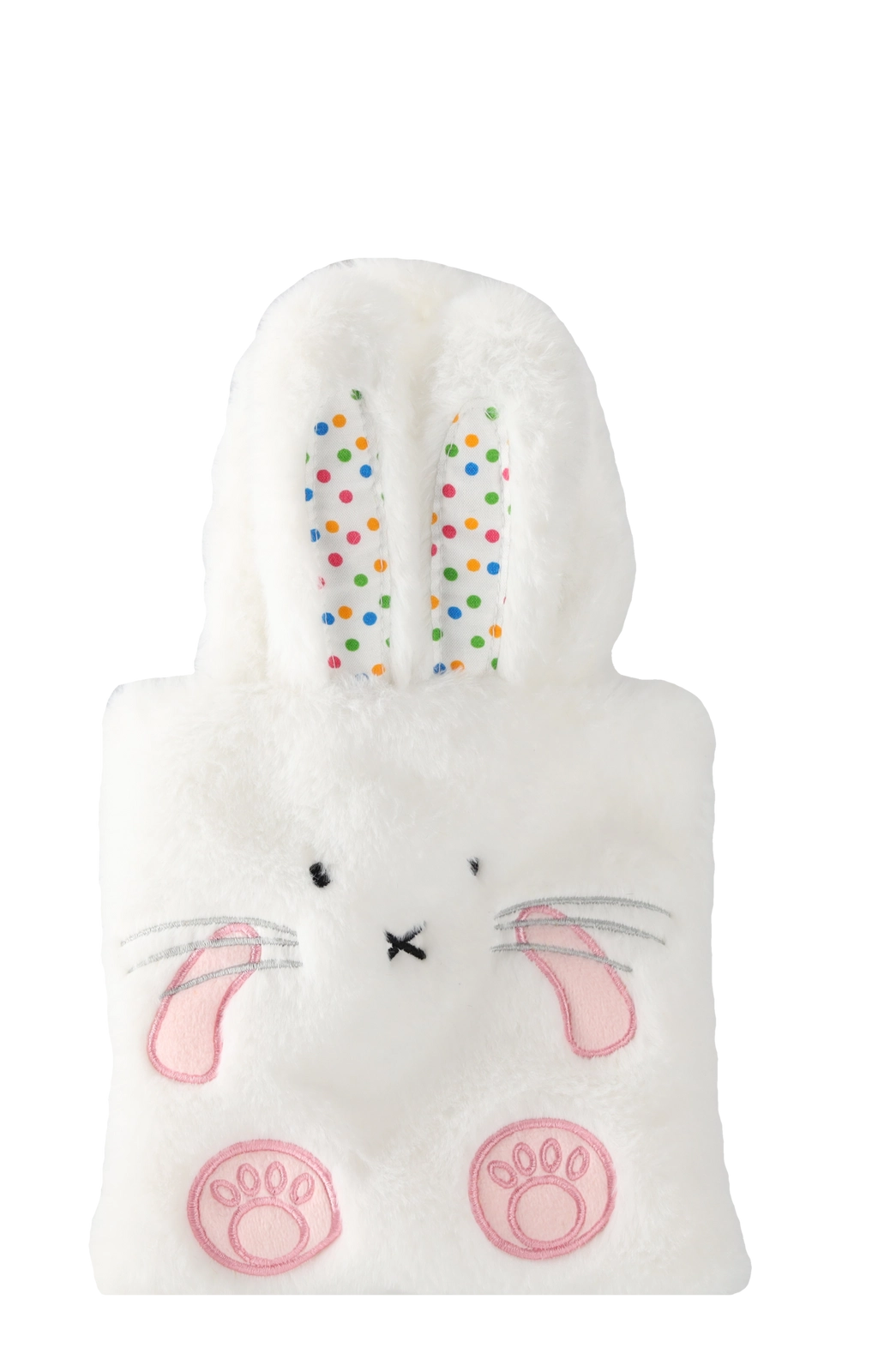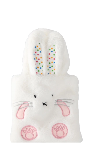 Biała pluszowa wersja z zajączkowymi uszami i delikatnymi haftami jest miękka, bezpieczna i zachęca do przytulenia.