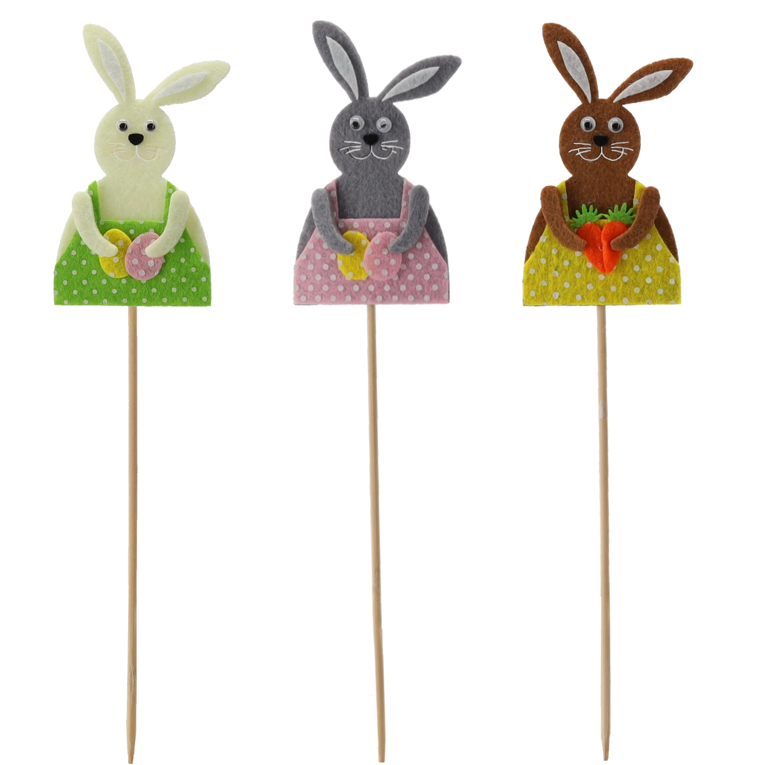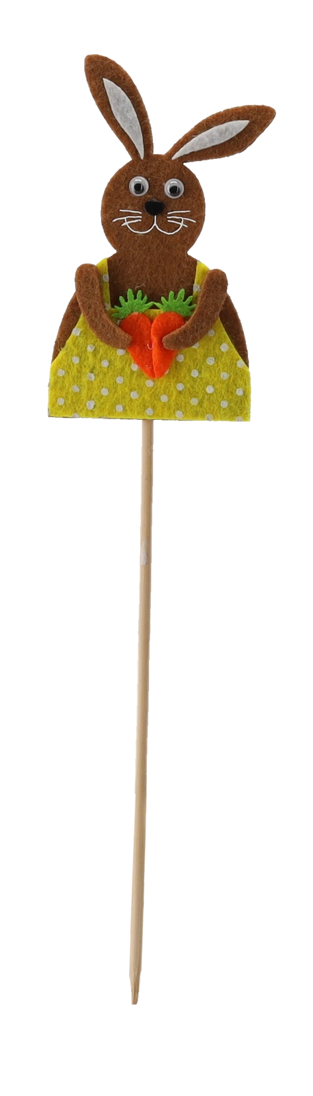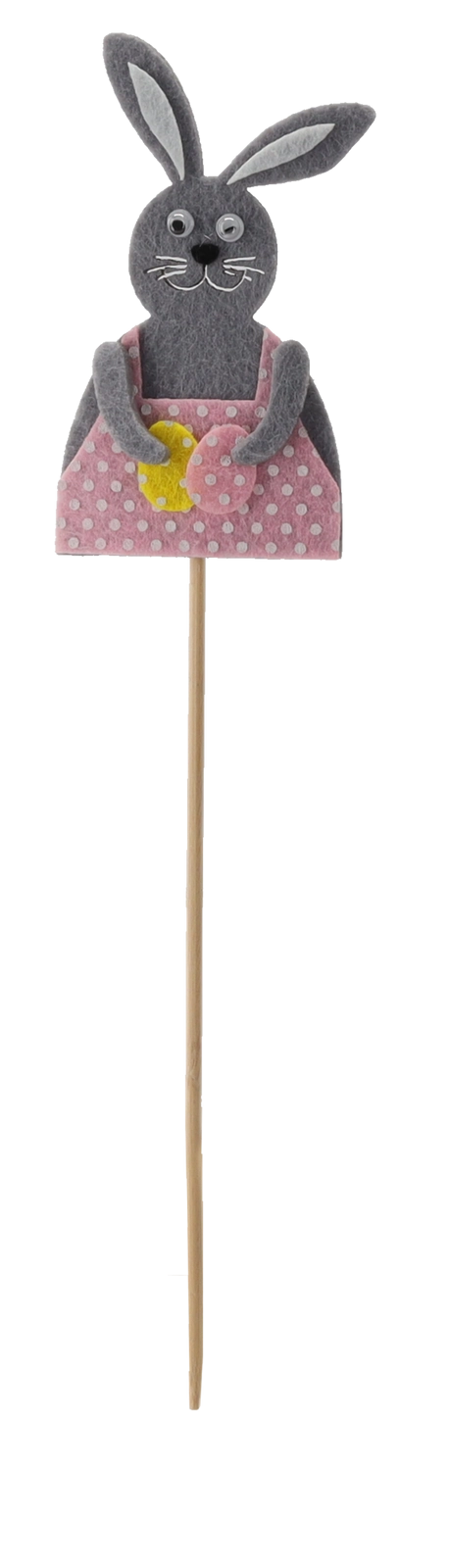 Króliczki na drewnianym patyczku są wykonane z miękkiej tkaniny/filcu z drobnymi detalami, dzięki czemu wyglądają figlarnie i wprowadzają do domu typowy wielkanocny nastrój. Dzięki smukłemu patyczkowi łatwo umieścisz je w ziemi, masie florystycznej oraz między łodygami kwiatów, gdzie dobrze się trzymają i pięknie się prezentują.