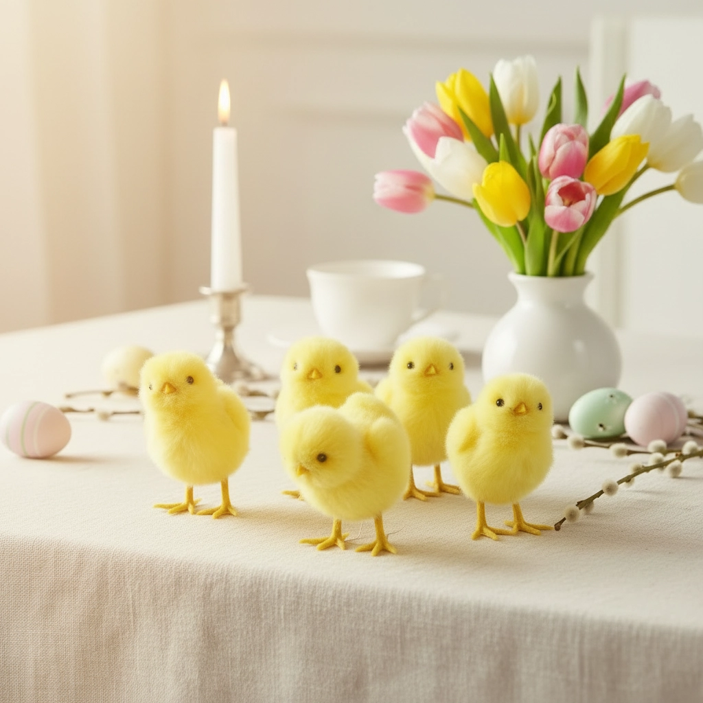 Dzięki kompaktowym wymiarom 4 × 6 × 6 cm kurczątka są idealne do stroików stołowych, wielkanocnych koszyków, wianków oraz kompozycji kwiatowych. Pięć różnych wzorów w opakowaniu wnosi różnorodność i dynamikę, ożywiając każdy kąt wnętrza.