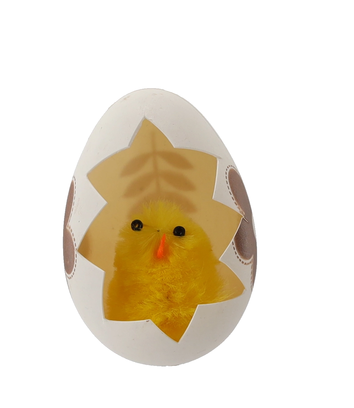Z tym czteroelementowym zestawem w mgnieniu oka stworzysz przytulną i figlarną wielkanocną aranżację. Kurczątka osadzone w połówce skorupki przyciągają uwagę barwnym wykonaniem i subtelnymi detalami, które świetnie prezentują się w każdym wnętrzu – od stołu jadalnianego po parapet okienny.