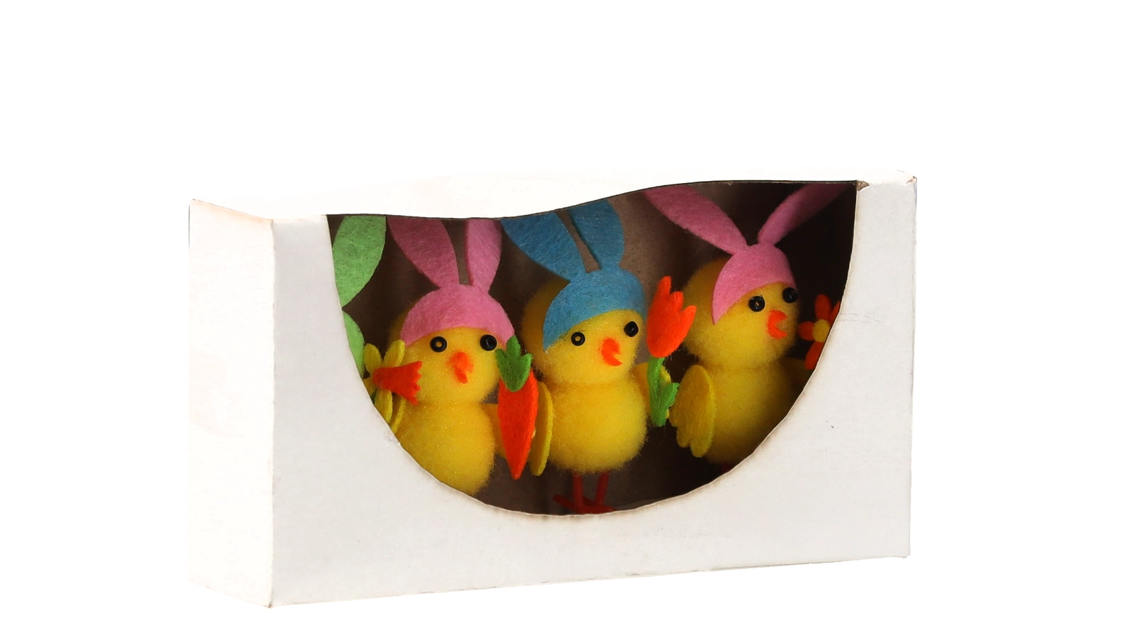 Stwórz w domu czarującą, wiosenną aurę dzięki zestawowi czterech żółtych kurczaczków z króliczymi uszkami. Te dekoracje symbolizują nadejście wiosny, radość i odnowę i łatwo je połączysz z innymi wielkanocnymi dodatkami. Dzięki wytrzymałemu, plastikowemu wykonaniu są lekkie, bezpieczne i nadają się do wielokrotnego użytku.