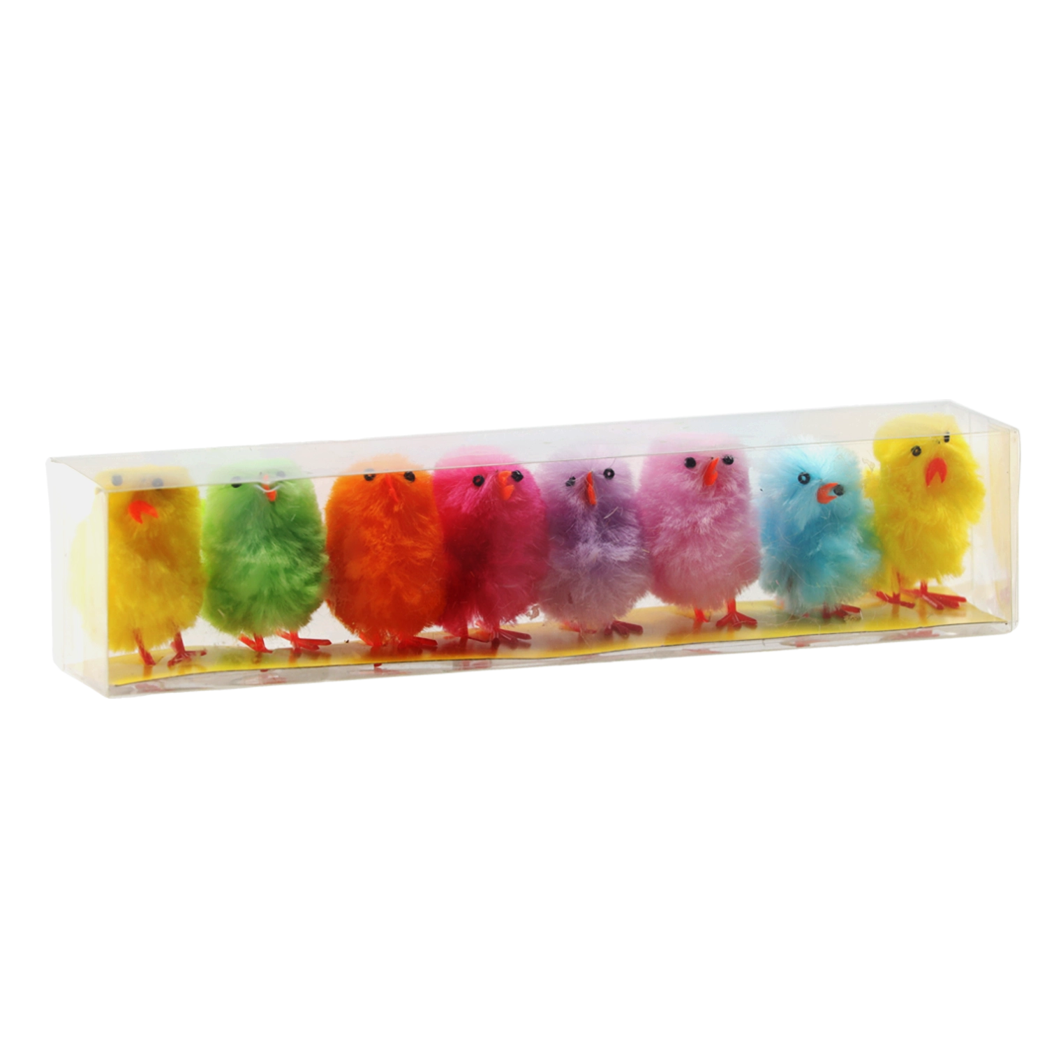 Zestaw zawiera kurczaczki w kilku jaskrawych kolorach, które natychmiast ożywią każdą wielkanocną lub wiosenną dekorację.