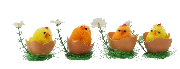 - Zabawny wygląd: urocze kurczątka w połówce skorupki.