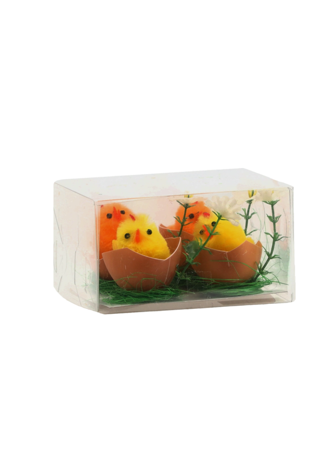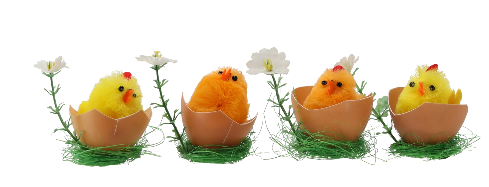 Wprowadź do domu wiosenny nastrój z zestawem czterech wielkanocnych ozdób „Kurczątka w skorupce”. Każde kurczątko w połówce skorupki symbolizuje nowe życie i początek wiosny. Dzięki żywym kolorom, uroczemu designowi i kompaktowym wymiarom są idealne na stół, parapet okienny oraz do wianków.