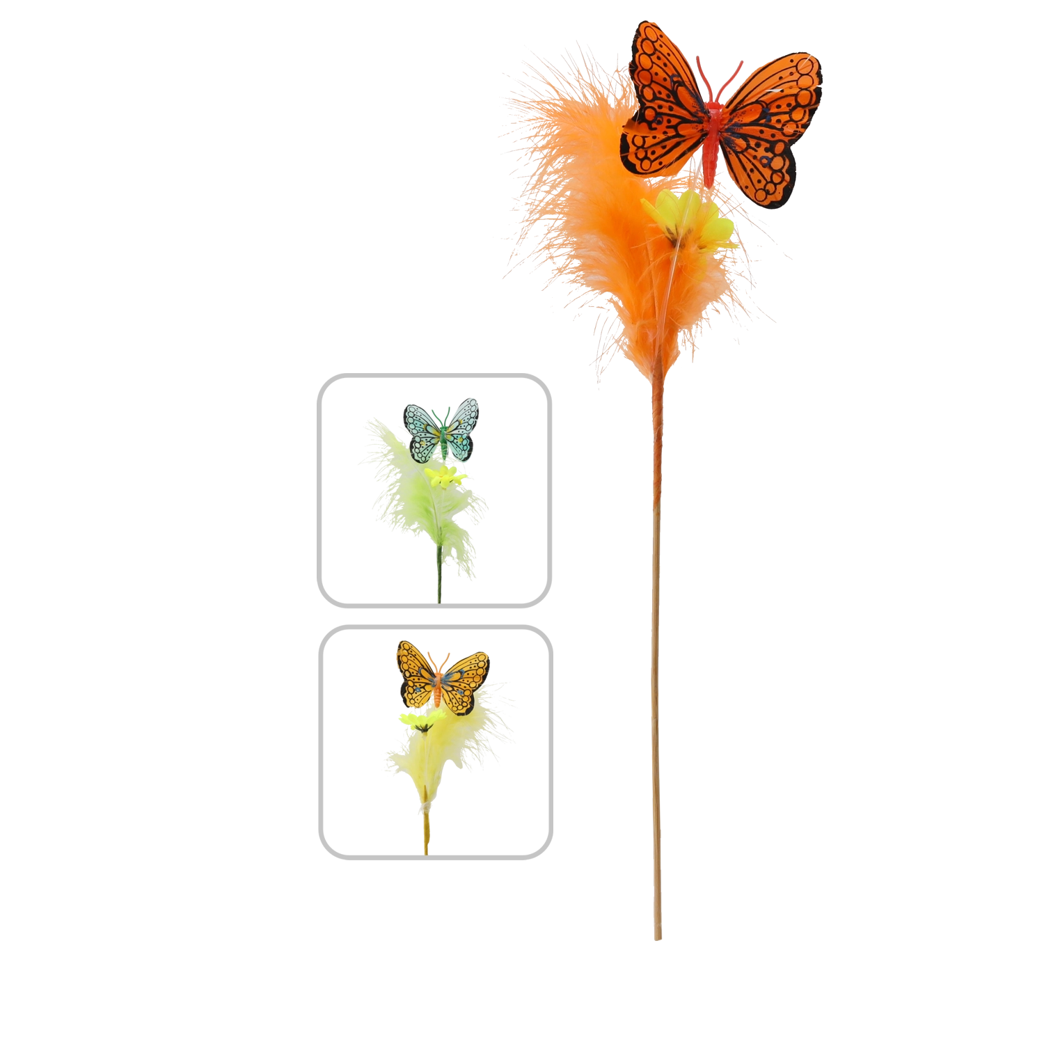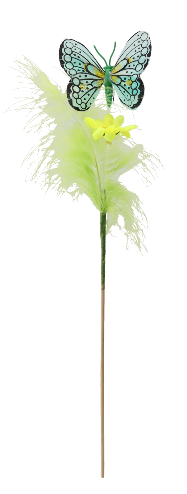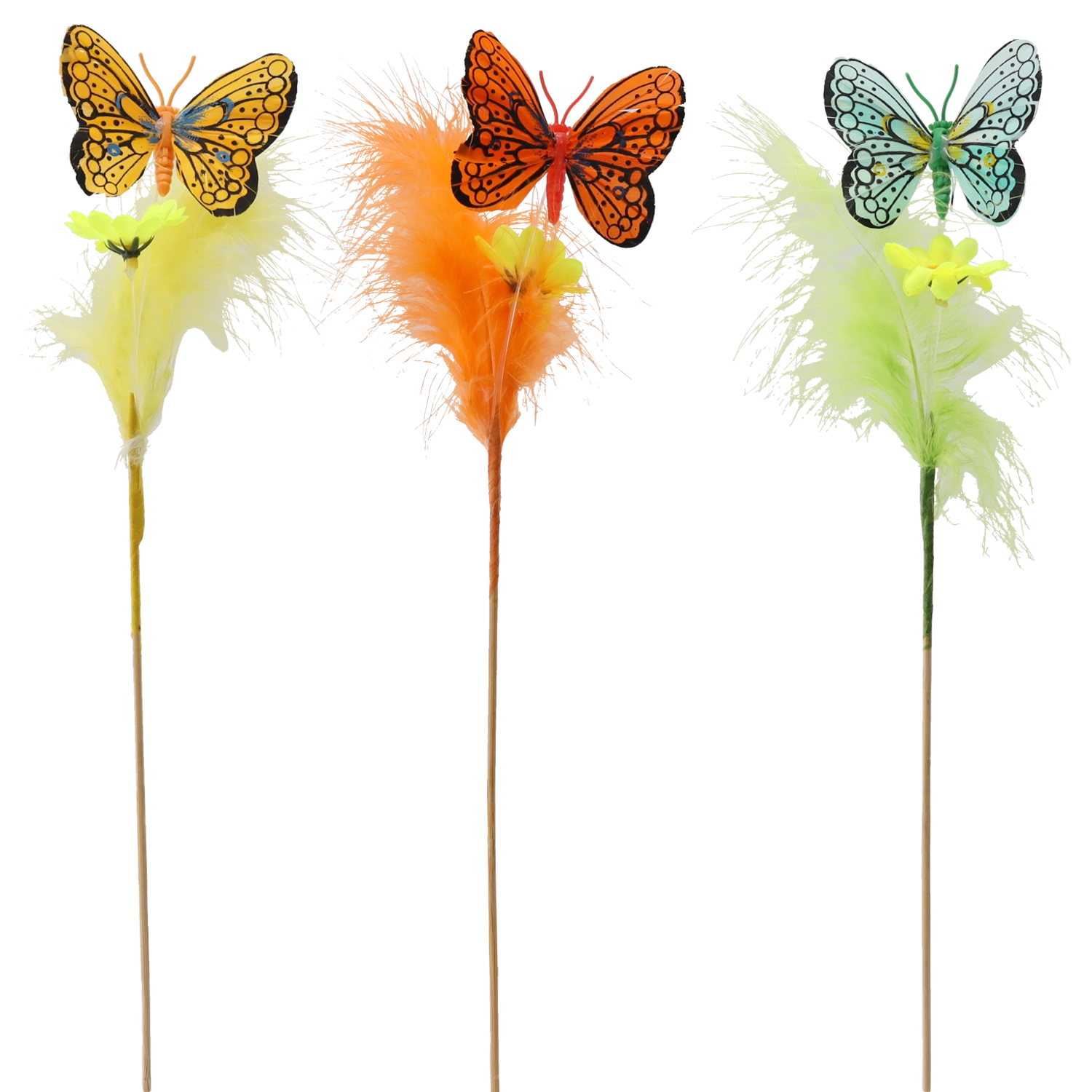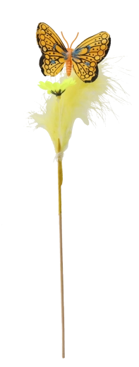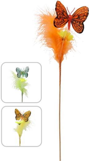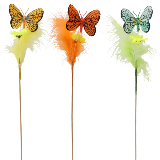 Stwórz w domu wiosenną atmosferę dzięki dekoracji motyla na patyczku ozdobionej piórkami. Te urokliwe ozdoby w miksie 3 pastelowych kolorów łatwo dopasują się do każdego wnętrza i podkreślą wielkanocny wystrój. Dzięki drewnianemu patyczkowi umieścisz je w kilka chwil w kompozycjach kwiatowych, wiankach lub koszykach.