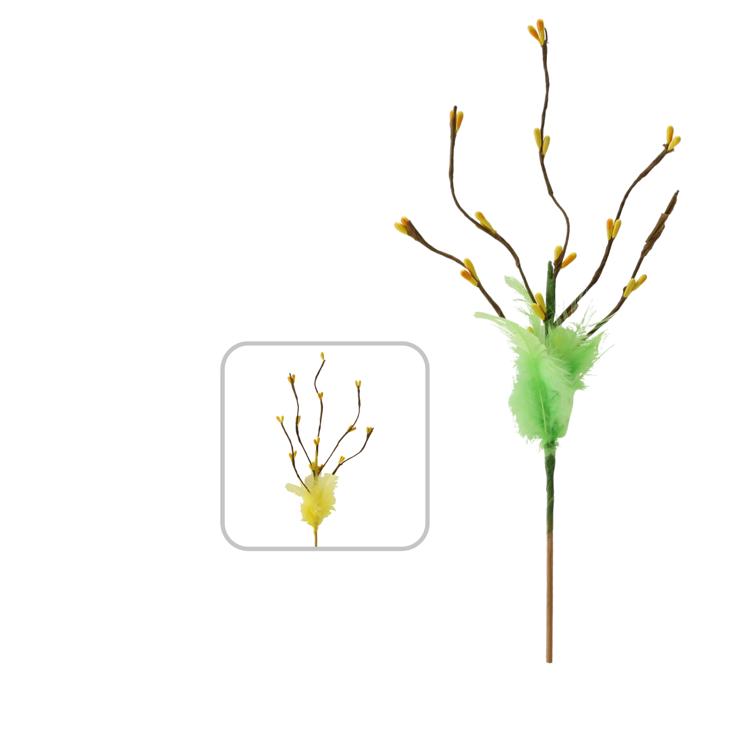 Elegancka wielkanocna gałązka na piku o długości 32 cm to stylowy dodatek do świątecznych aranżacji. Świetnie prezentuje się w wazonach, kompozycjach kwiatowych i koszyczkach. Dostępna w dwóch wariantach kolorystycznych dla łatwego dopasowania do dekoracji. Wykonana z wysokiej jakości materiałów syntetycznych, które zapewniają długą żywotność i trwałość, a dzięki lekkiej konstrukcji jest bardzo łatwa w użyciu.