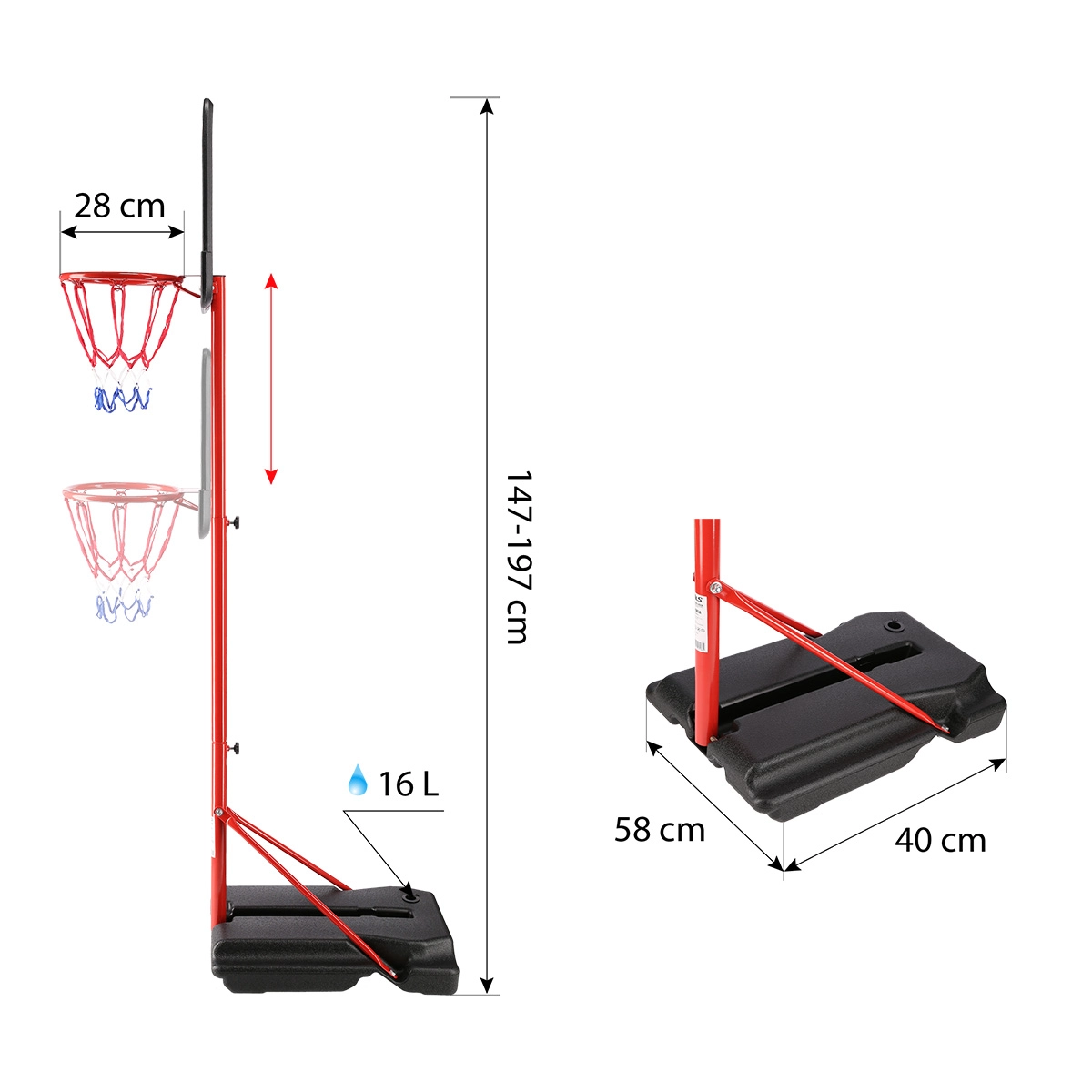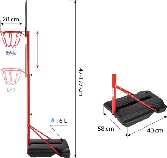 - Regulacja wysokości – konstrukcja 1,47 lub 1,97 m; obręcz na wysokości 1,07 lub 1,57 m
