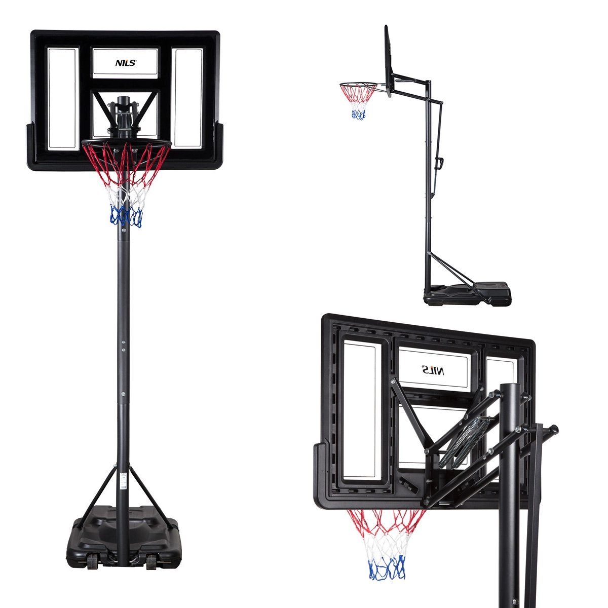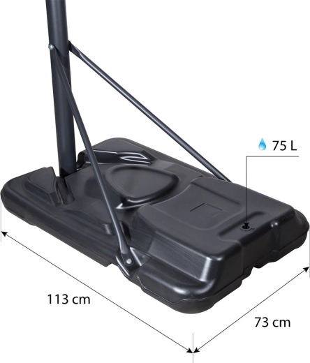 Intuicyjny mechanizm zmiany wysokości z uchwytem i przyciskiem umożliwia szybkie ustawienie na jednym z pięciu poziomów. Maszynowa, pojemna podstawa o pojemności 75 litrów wody gwarantuje wysoką stabilność, a dzięki zintegrowanym kółkom łatwo przestawisz kosz tam, gdzie chcesz grać.