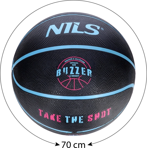 Piłka NILS Buzzer w rozmiarze 5 została zaprojektowana dla dzieci i młodszych graczy w wieku około 5–12 lat. Dzięki mniejszym wymiarom i masie pomaga rozwijać właściwą technikę kozłowania, celność rzutów oraz pewność przy podaniach. Nowoczesny czarny design z kontrastowymi kanałkami doda stylu każdemu treningowi i meczowi.