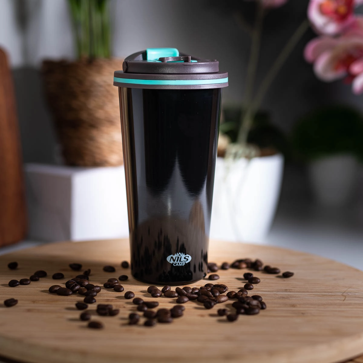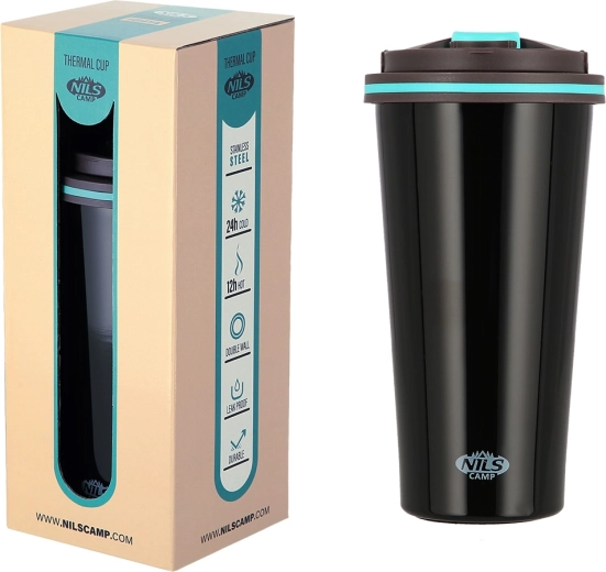 Praktyczny kubek termiczny NILS Camp w czarnym kolorze łączy minimalistyczny design i niezawodną izolację. Podwójna stalowa ścianka utrzymuje Twój ulubiony napój w odpowiedniej temperaturze przez cały dzień – gorącą herbatę rano i orzeźwiający napój po południu. Pokrywkę z wygodnym mechanizmem flip-top otworzysz jednym ruchem, a silikonowa uszczelka skutecznie zapobiega przeciekaniu po zamknięciu.