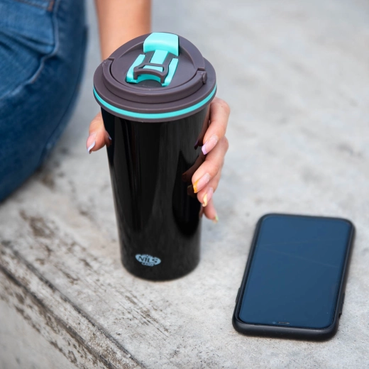 Podwójna stalowa ścianka utrzymuje kawę gorącą do 12 godzin, a napoje zimne do 24 godzin – idealny do pracy, szkoły i na wycieczki.
