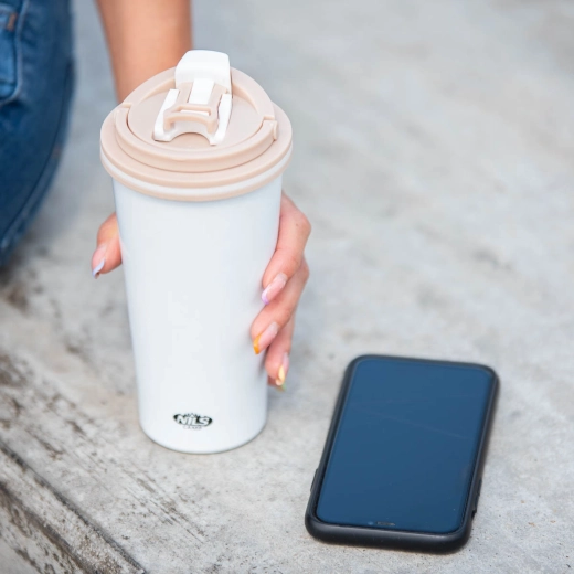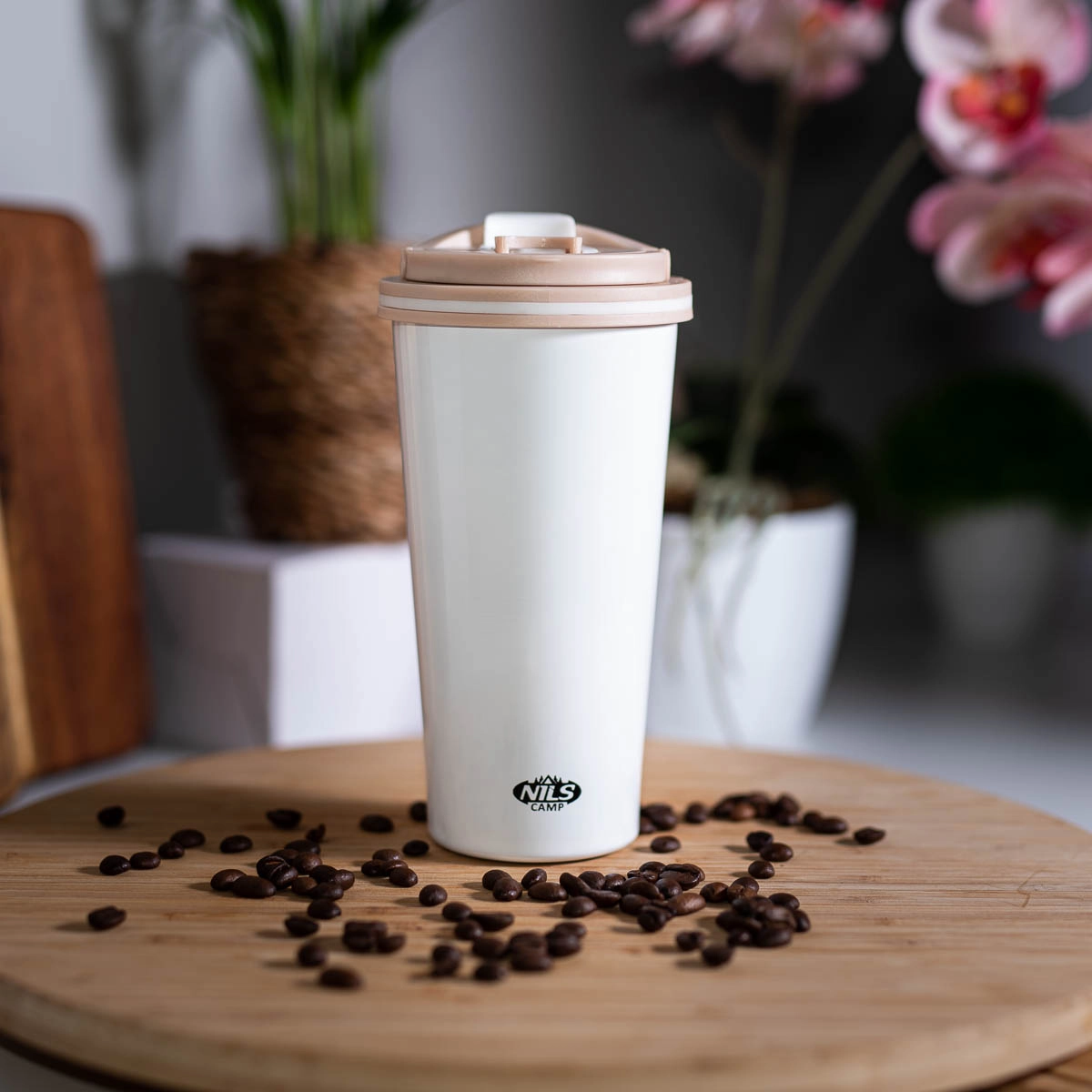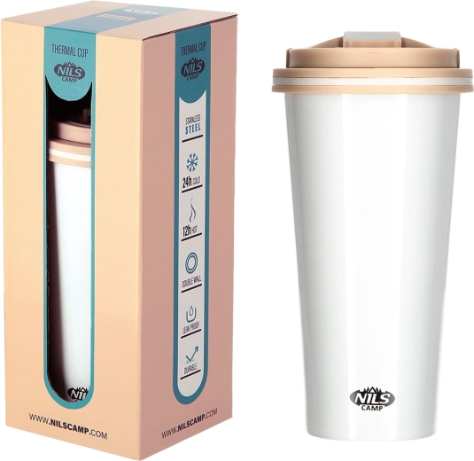Praktyczny i elegancki kubek termiczny NILS Camp w białym kolorze jest idealny do codziennego nawadniania. Dzięki podwójnej ściance ze stali nierdzewnej niezawodnie utrzymuje temperaturę napoju – gorące do 12 godzin, zimne do 24 godzin. Wygodne wieczko flip z dźwignią łatwo obsłużysz jedną ręką, a silikonowa uszczelka minimalizuje ryzyko rozlania.