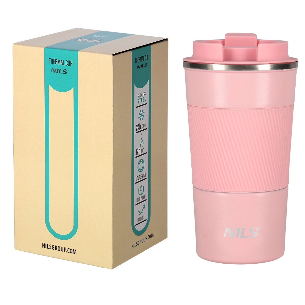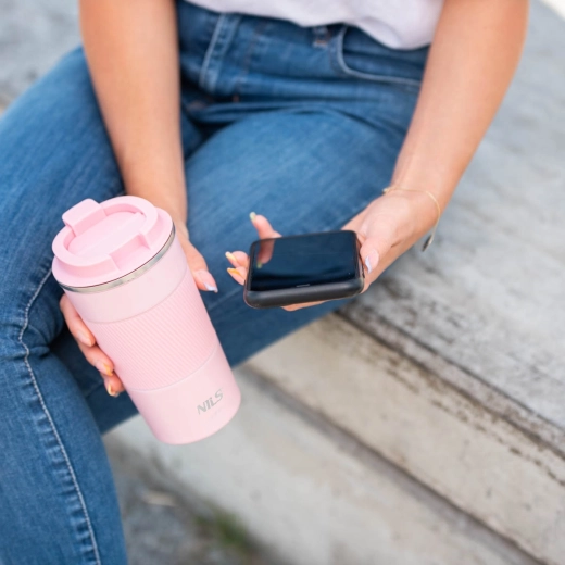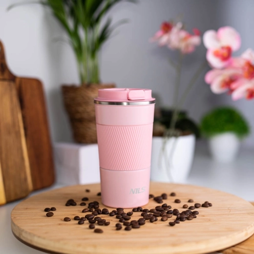 Popularny podróżny kubek termiczny w eleganckim różowym kolorze wykonano z stali nierdzewnej z podwójną ścianką, która niezawodnie utrzymuje temperaturę. Dzięki sprytnemu systemowi wieczka wystarczy nacisnąć od spodu, wieko się otworzy i możesz delektować się kawą lub herbatą bez zbędnych rozlań. Silikonowa uszczelka w wieczku dodatkowo minimalizuje wyciek płynów przy zamkniętym kubku.