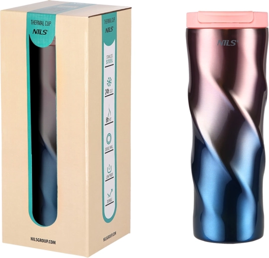 Odkryj elegancki i funkcjonalny kubek termiczny, który stanie się Twoim codziennym towarzyszem. Podwójna ścianka ze stali nierdzewnej niezawodnie utrzymuje temperaturę napoju, a praktyczne wieczko typu flip z uszczelniającym silikonem minimalizuje ryzyko rozlania. Dzięki antypoślizgowej gumowej podstawie kubek stabilnie stoi na biurku i w samochodzie.