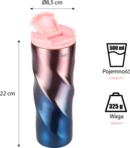 Pojemność 500 ml jest idealna na poranną kawę, herbatę czy orzeźwiającą lemoniadę. Lekka konstrukcja i ergonomiczne linie dobrze leżą w dłoni, dlatego kubek doskonale sprawdzi się w podróży, do pracy i na wycieczki.