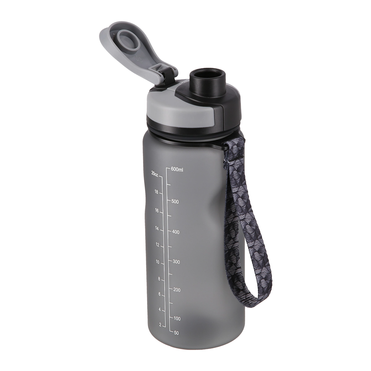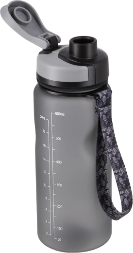 Boczna miarka ułatwia kontrolę dziennego spożycia płynów. Dzięki pętli butelkę łatwo chwycić lub przypiąć do plecaka – idealna na trening i wycieczki.